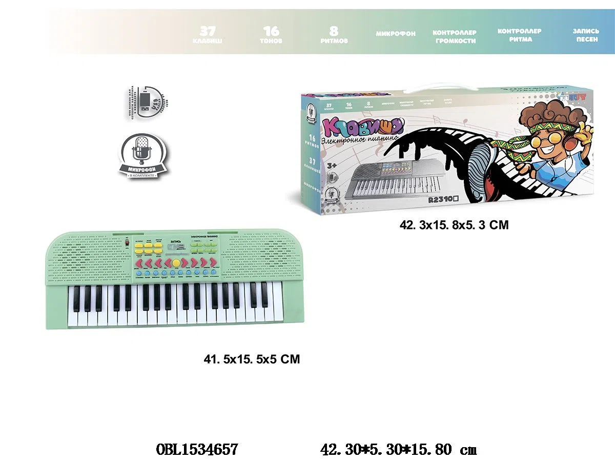 首页 > 俄文乐器系列 > 俄文版 37键多功能电子琴配麦克风/USB线 4*AA不包电