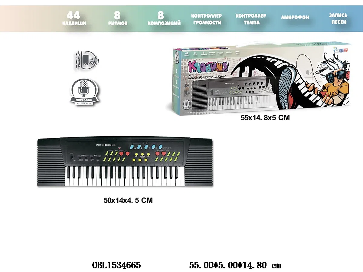 首页 > 俄文乐器系列 > 俄文版 44键多功能电子琴配麦克风/USB线 4*AA不包电