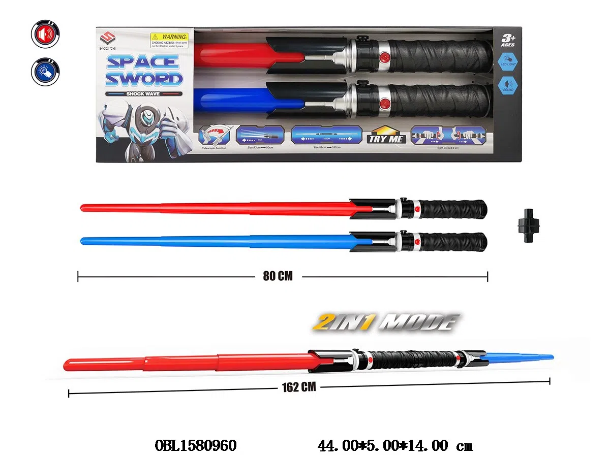 2合1闪光剑带灯光声音配连接器 可伸缩 6*AAA包电