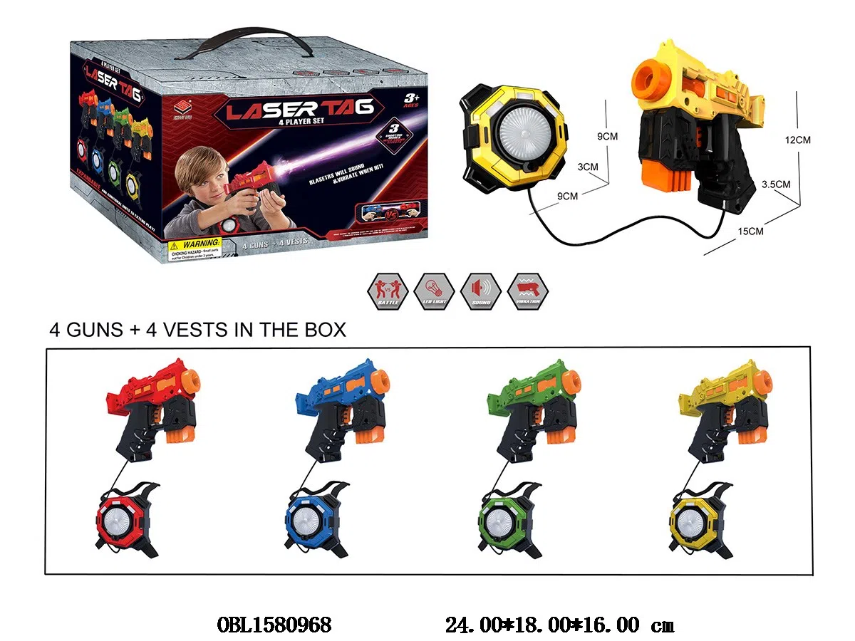 4支庄电动对战枪套装带灯光声音 总12*AAA无包电 4色混装