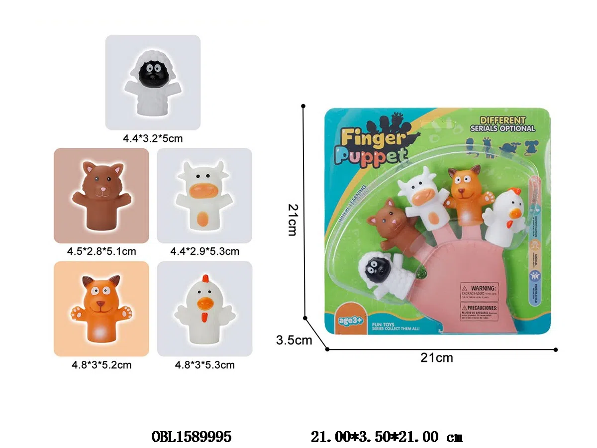 5只庄搪胶动物手偶