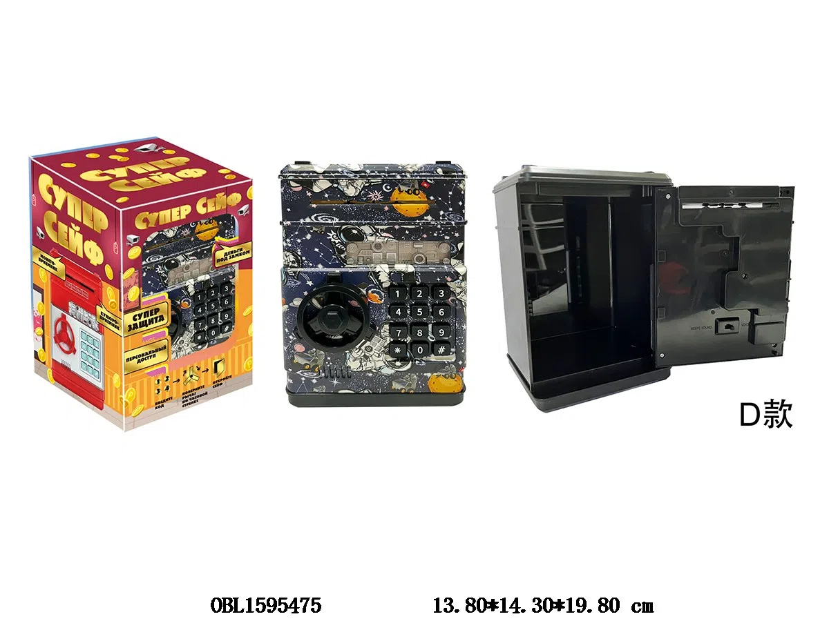 俄文存钱罐带灯光 自动卷钱 语音提示 密码解锁 3*AA不包电