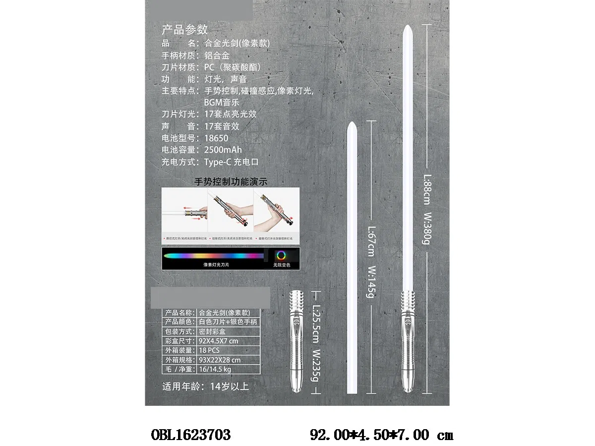 合金光剑带灯光声音 像素款 手势控制 18650电池包电