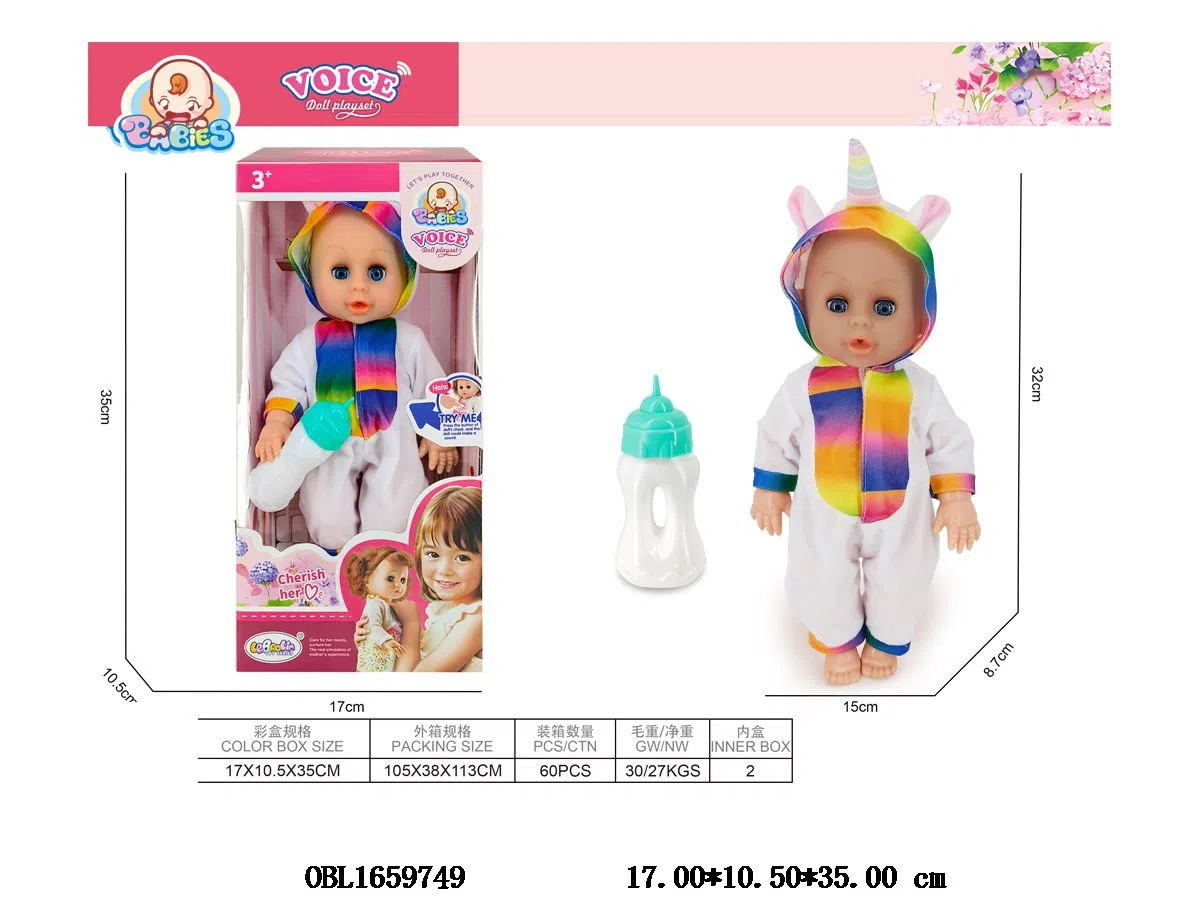 首页 > 功能娃娃 > 14寸空身搪胶头喝水小便公仔套装带IC 3*AG13包电 主体衣服1款1色