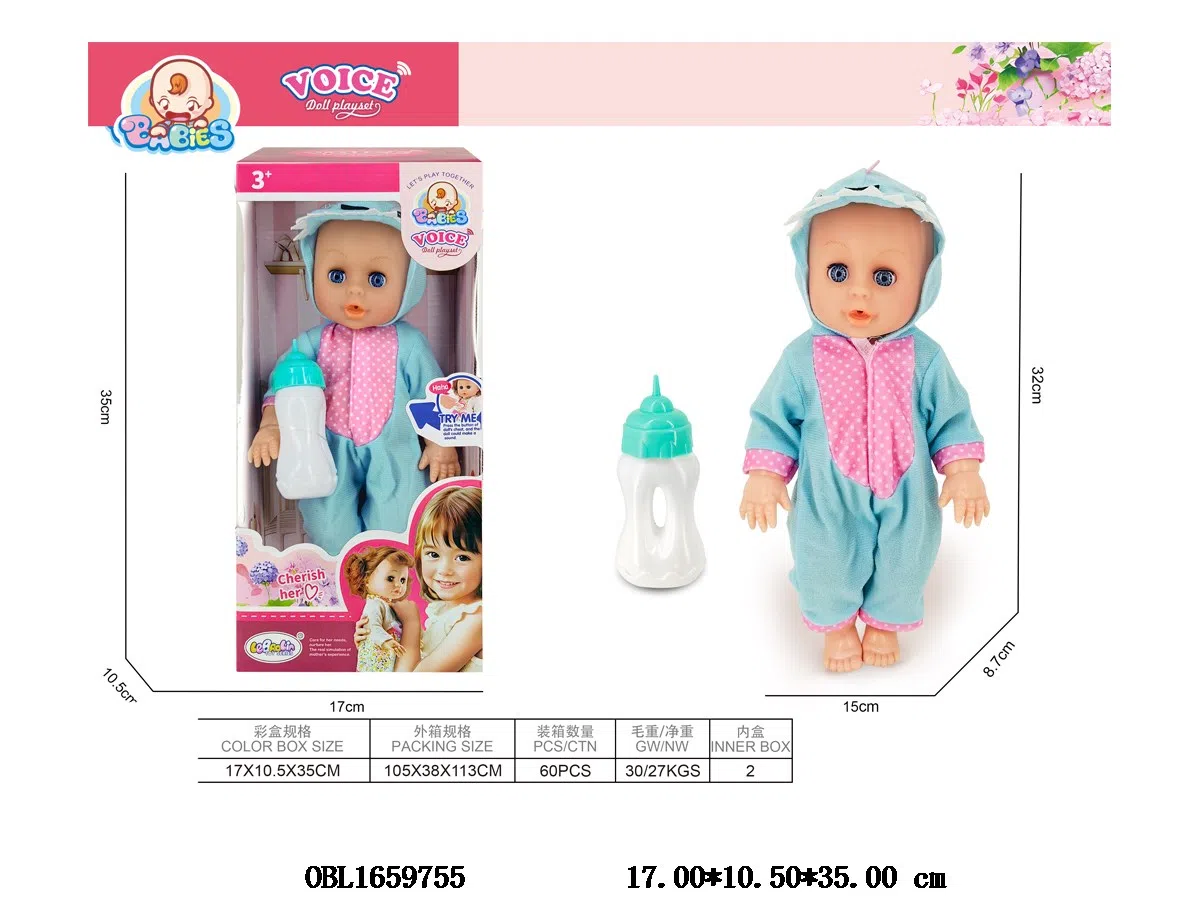 首页 > 功能娃娃 > 14寸空身搪胶头喝水小便公仔套装带IC 3*AG13包电 主体衣服1款1色