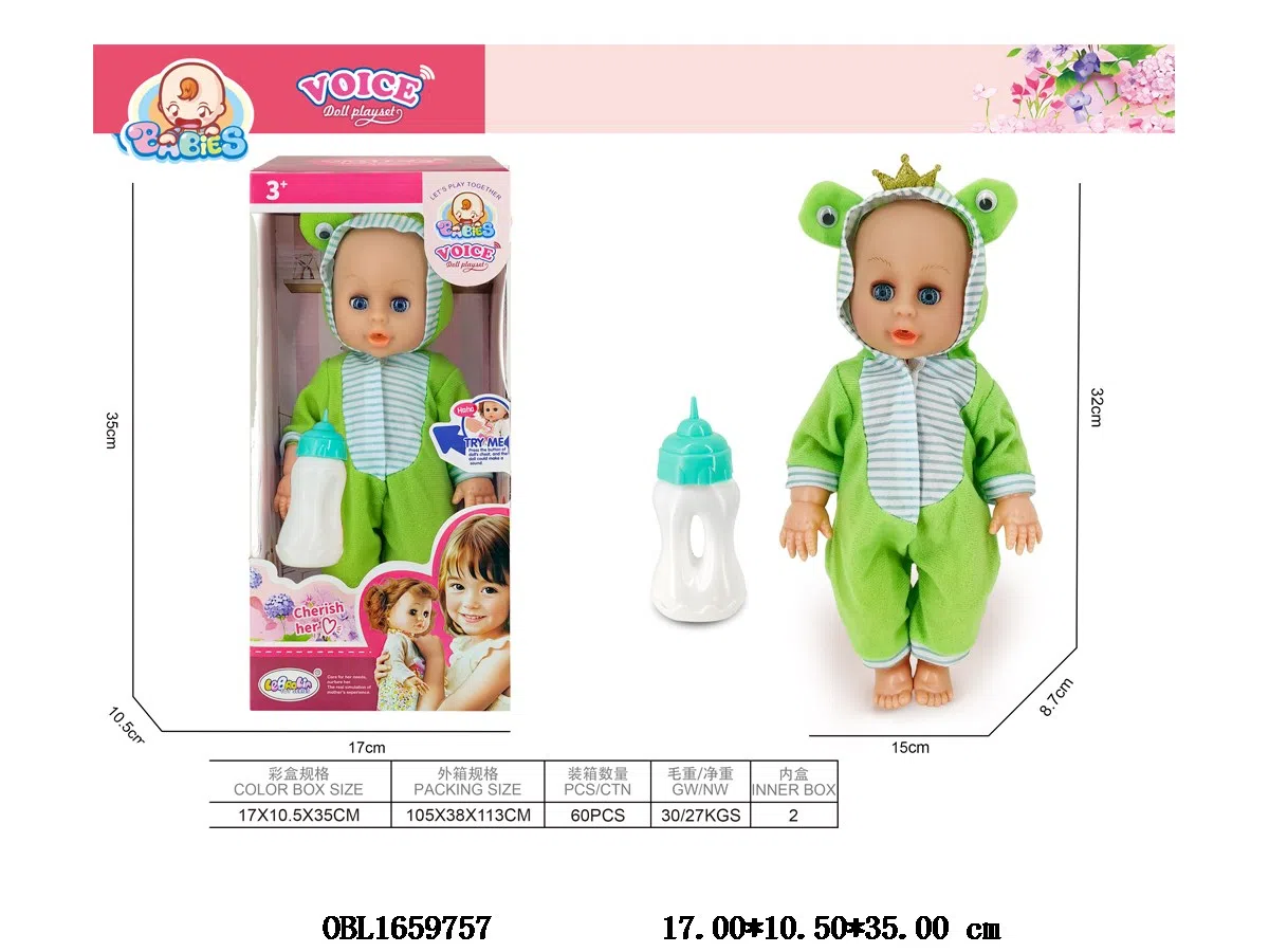 首页 > 功能娃娃 > 14寸空身搪胶头喝水小便公仔套装带IC 3*AG13包电 主体衣服1款1色