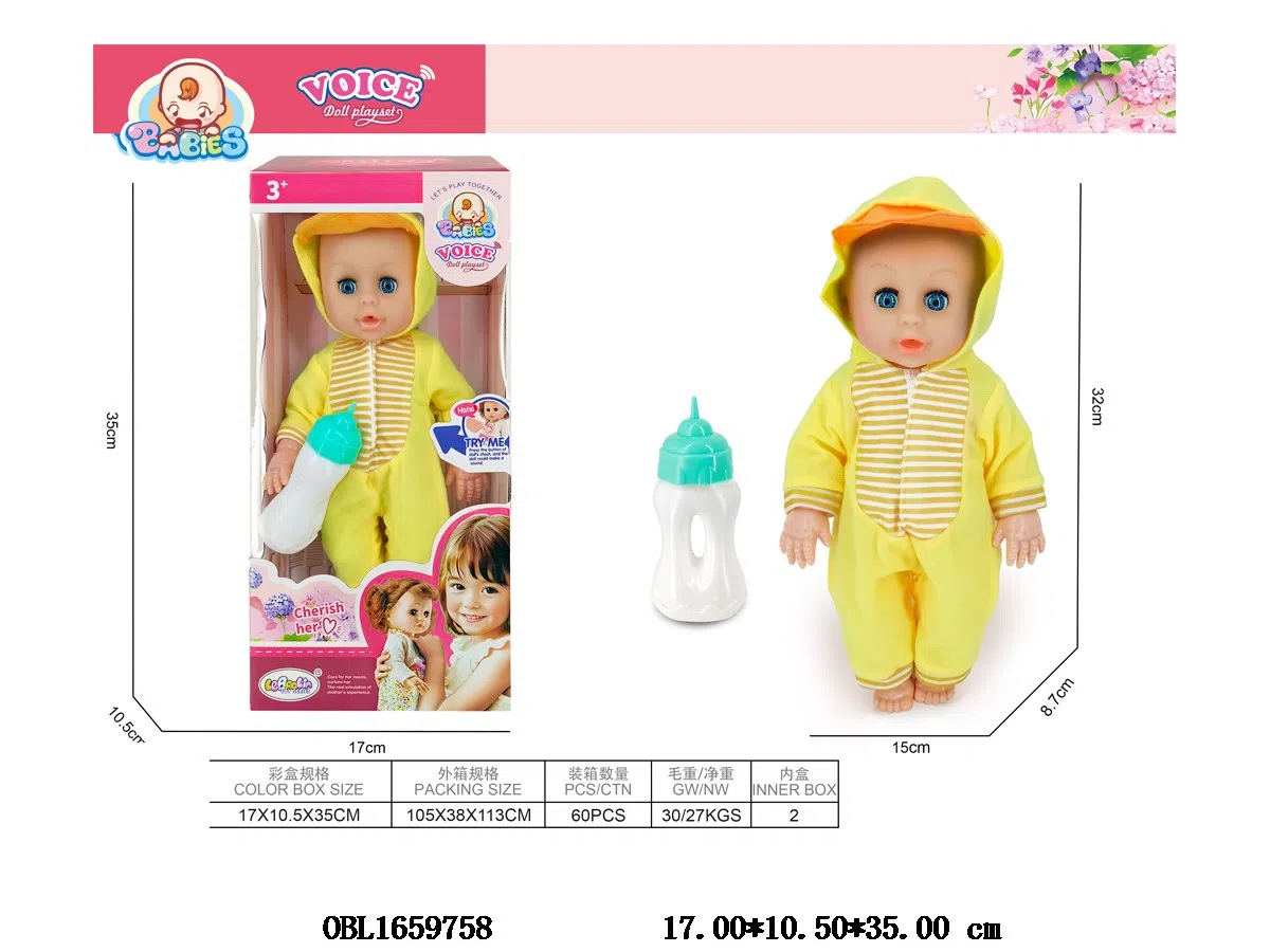 首页 > 功能娃娃 > 14寸空身搪胶头喝水小便公仔套装带IC 3*AG13包电 主体衣服1款1色
