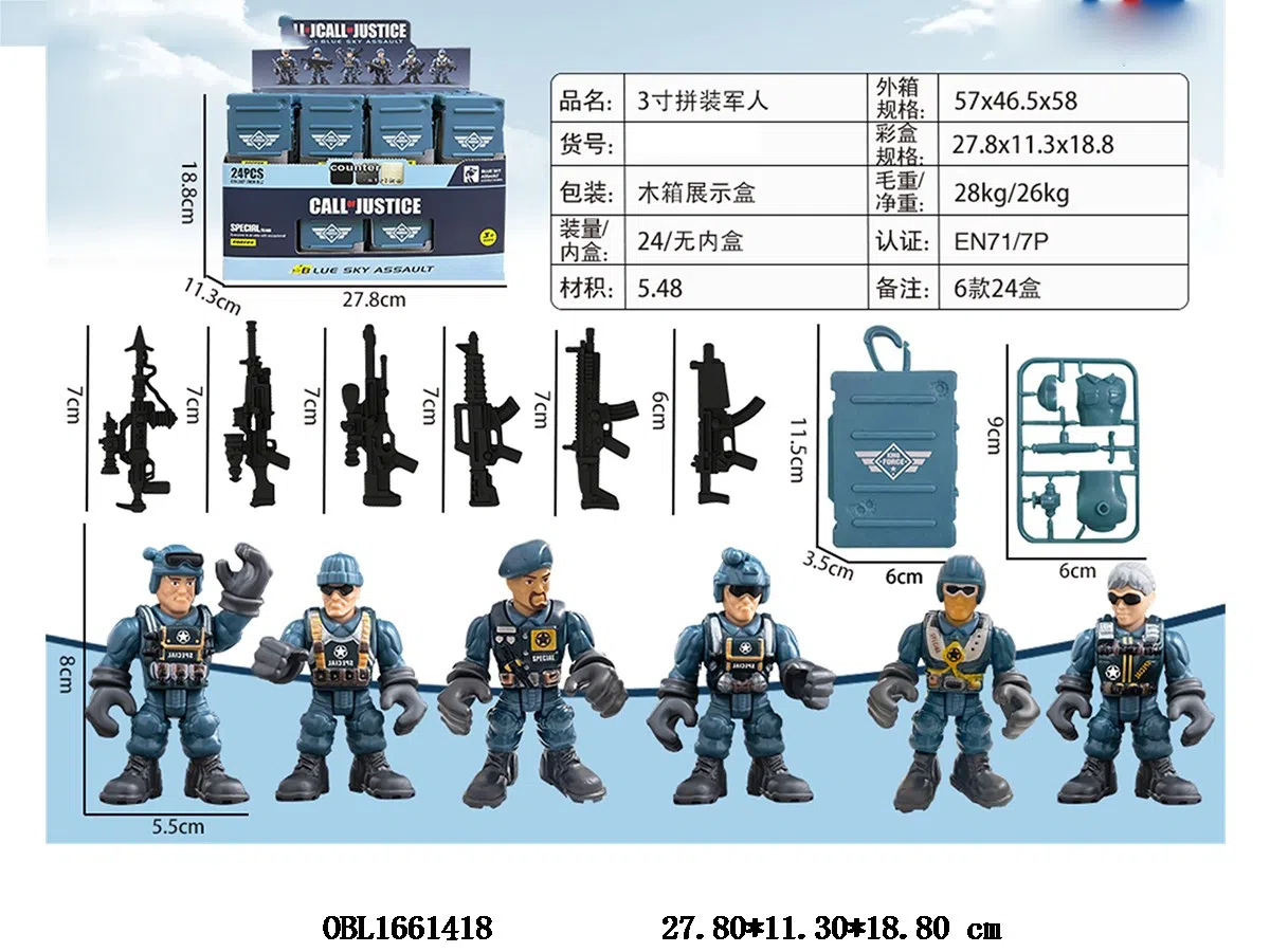 3寸拼装军人套装 24盒装1展示盒 6款混装