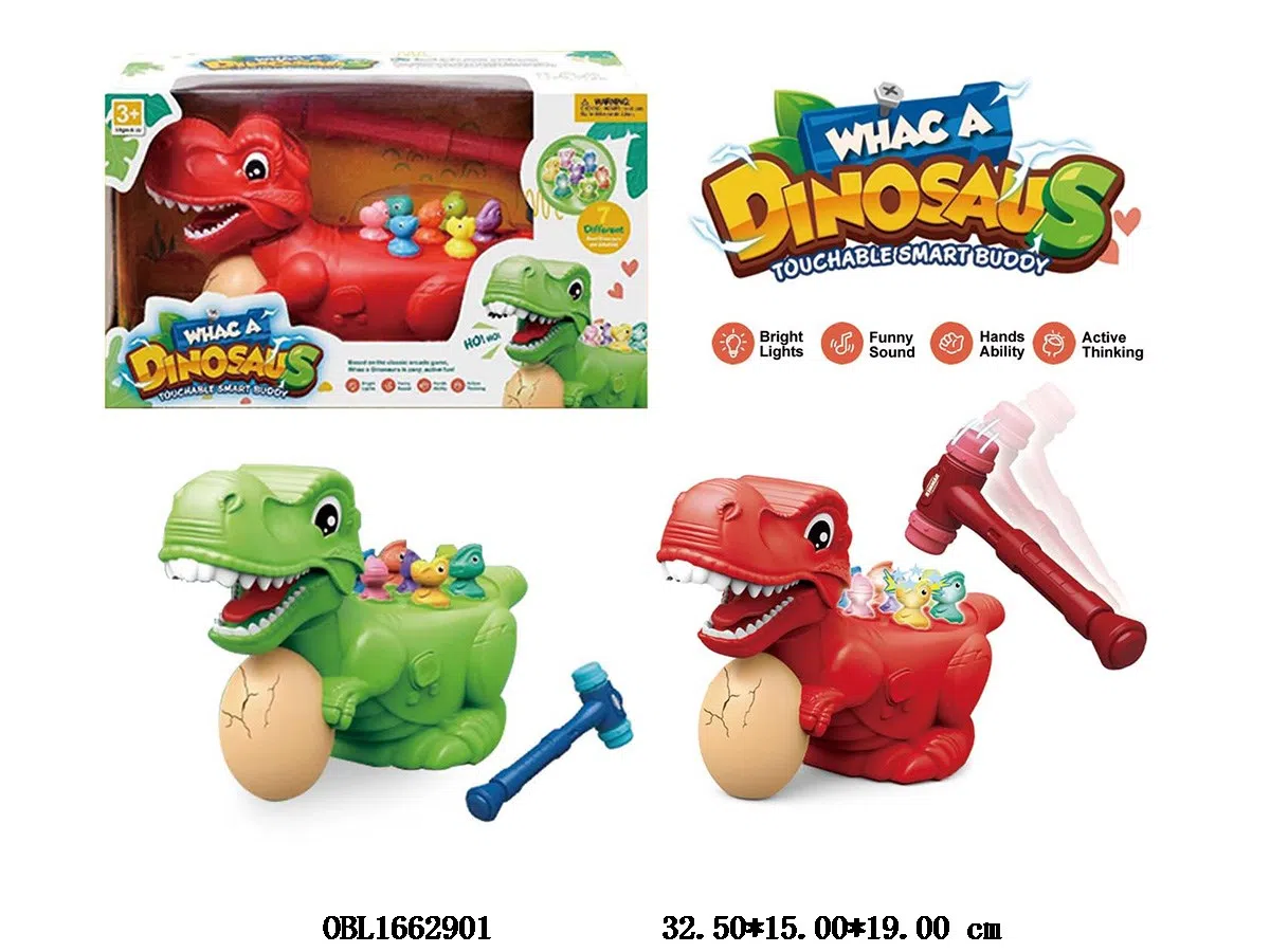 恐龙打地鼠游戏带灯光声音 3*AA不包电 2色混装