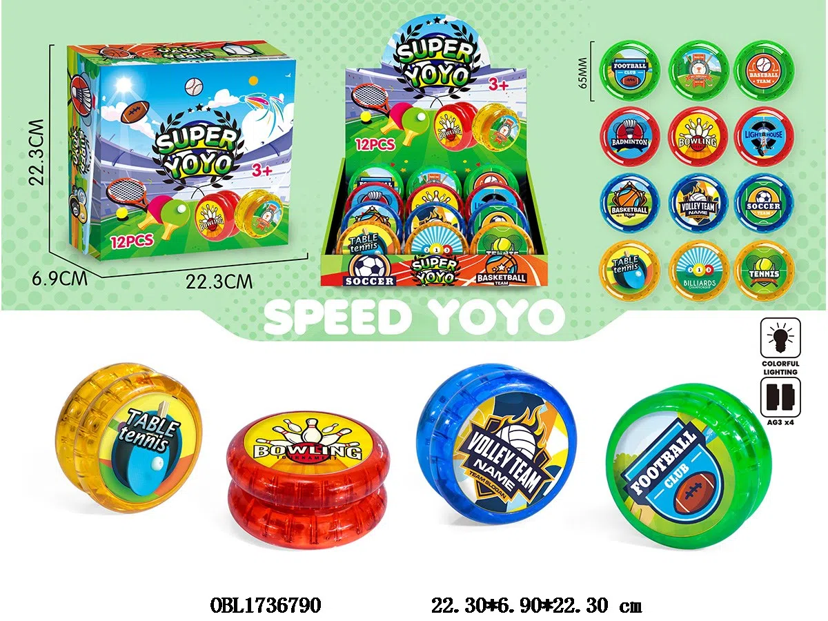 足球溜溜球 双面带七彩灯光 4*AG3包电 12粒装一展示盒 4色混装 图案随机
