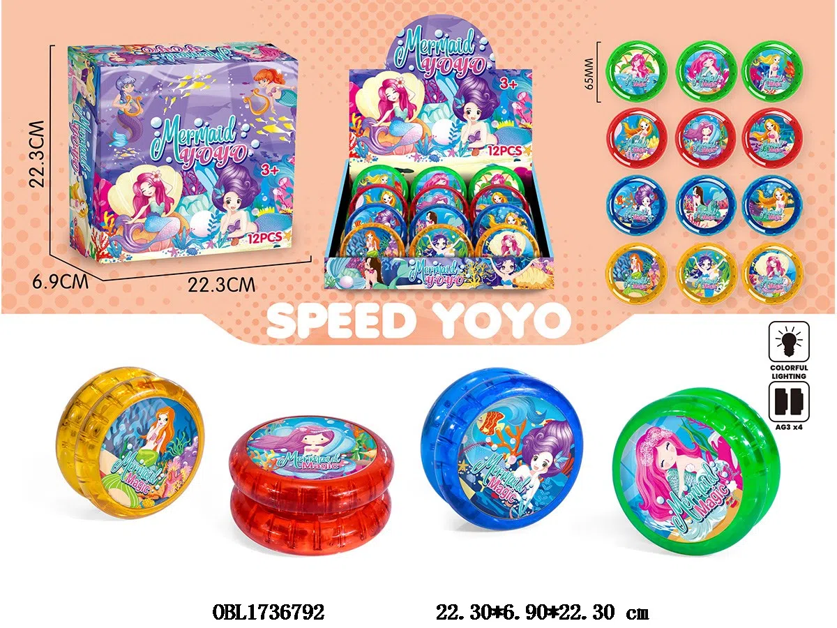 美人鱼溜溜球 双面带七彩灯光 4*AG3包电 12粒装一展示盒 4色混装 图案随机