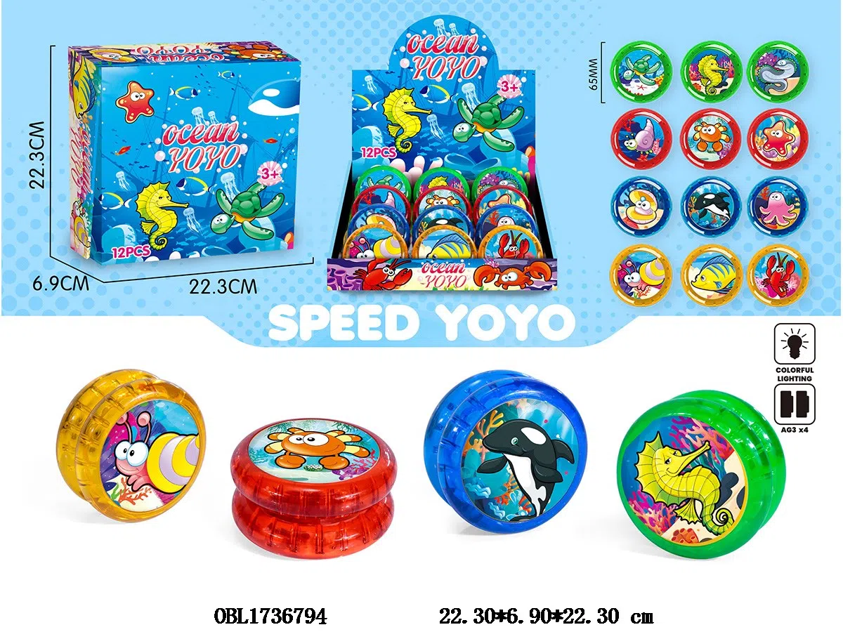 海底溜溜球 双面带七彩灯光 4*AG3包电 12粒装一展示盒 4色混装 图案随机
