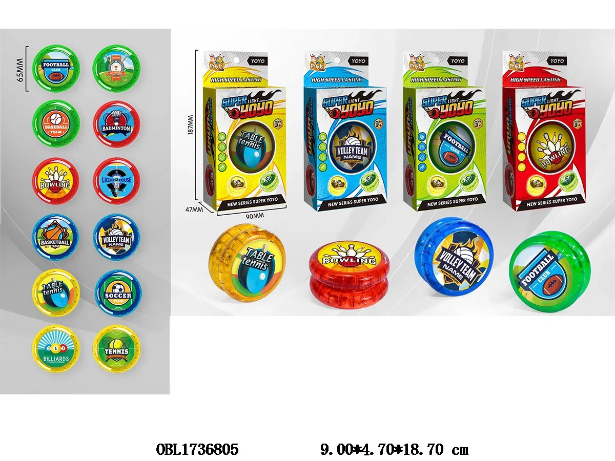 足球溜溜球 双面带七彩灯光 4*AG3包电 4色混装 图案随机