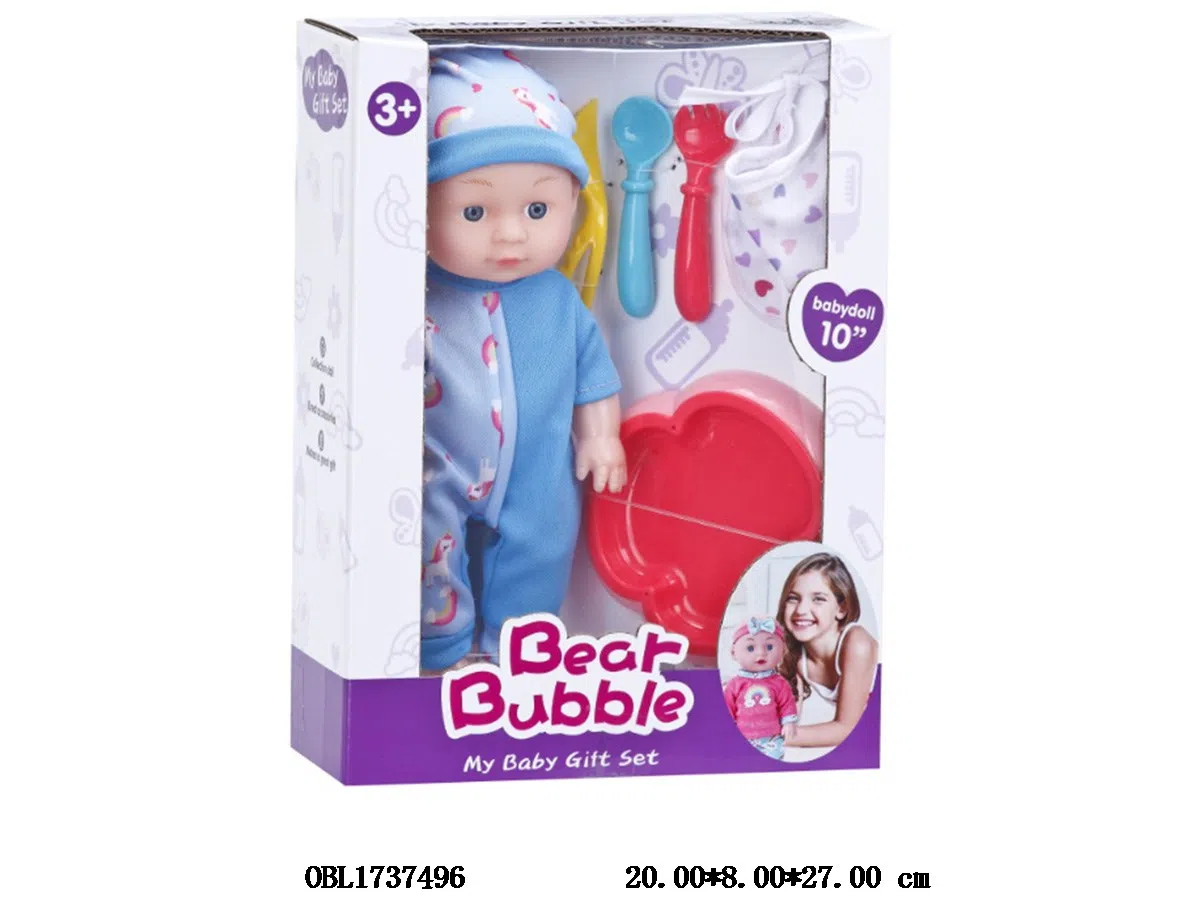 首页 > 芭芘公仔及芭芘套装 > 10寸空身公仔餐具套装 配口水巾 主体衣服一款一色
