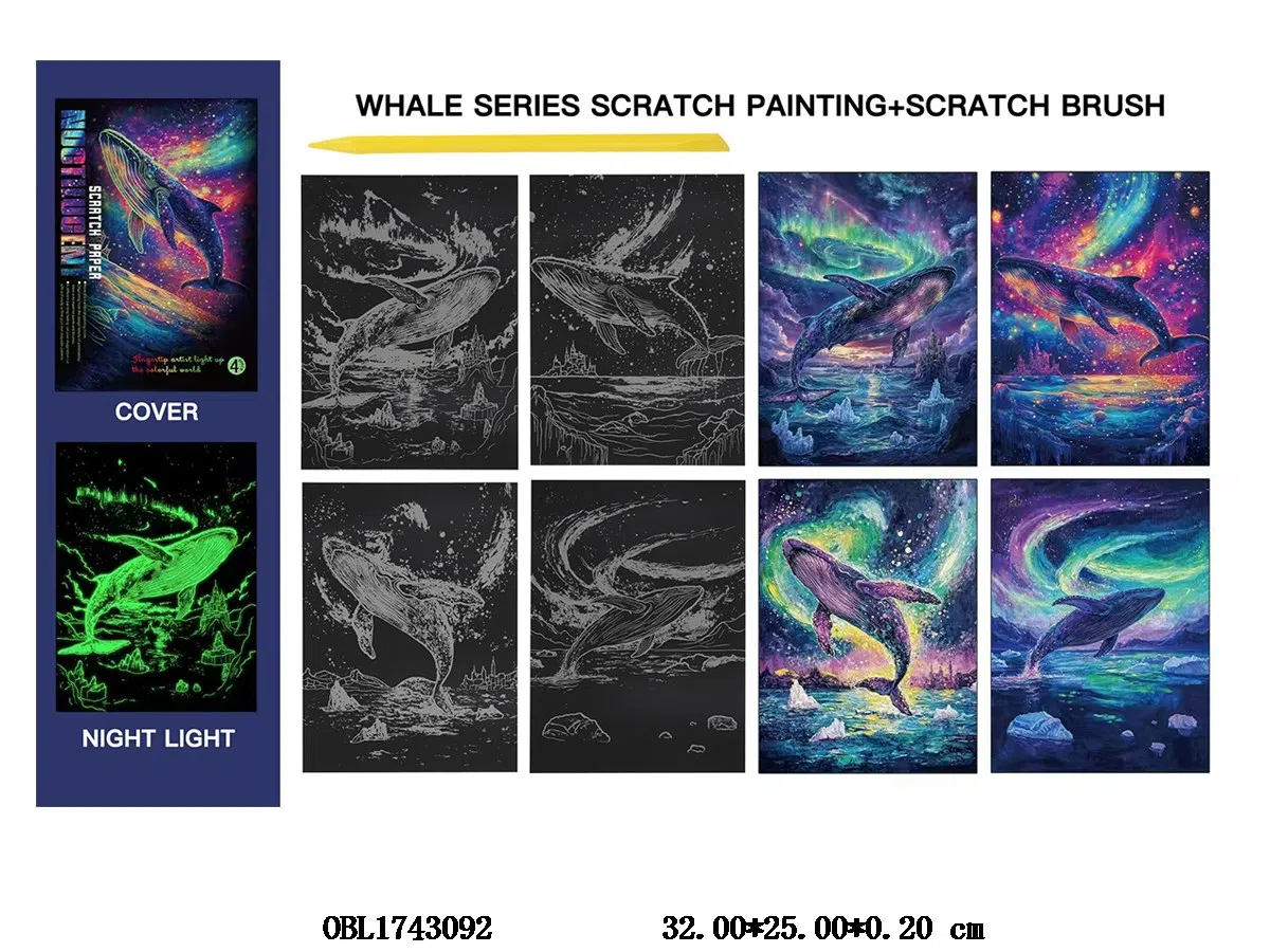 首页 > 涂鸦品 > 4片装海豚刮刮画套装 夜光