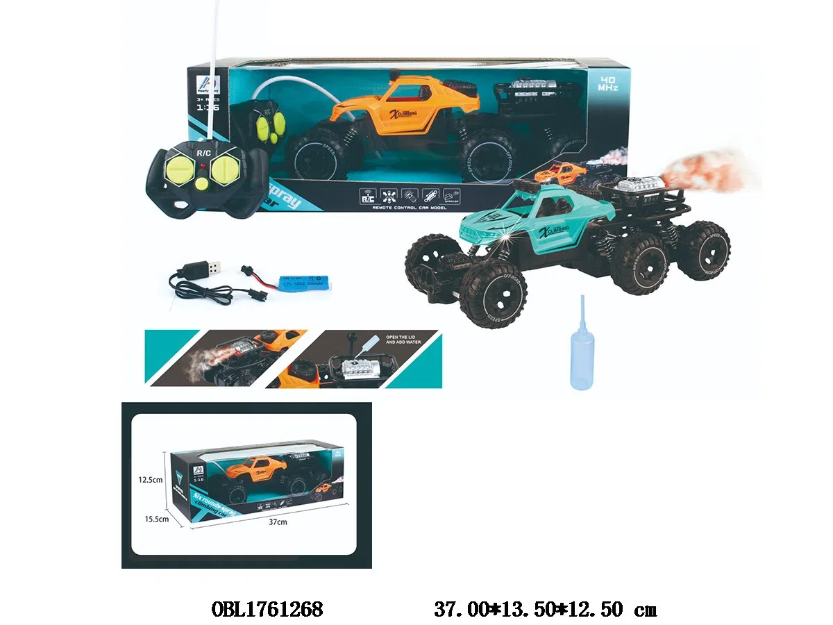1:16五通六轮攀爬遥控车带灯光喷雾 配USB线 车身3.7V包电 遥控器2*AA无包电 40频率 2色混装