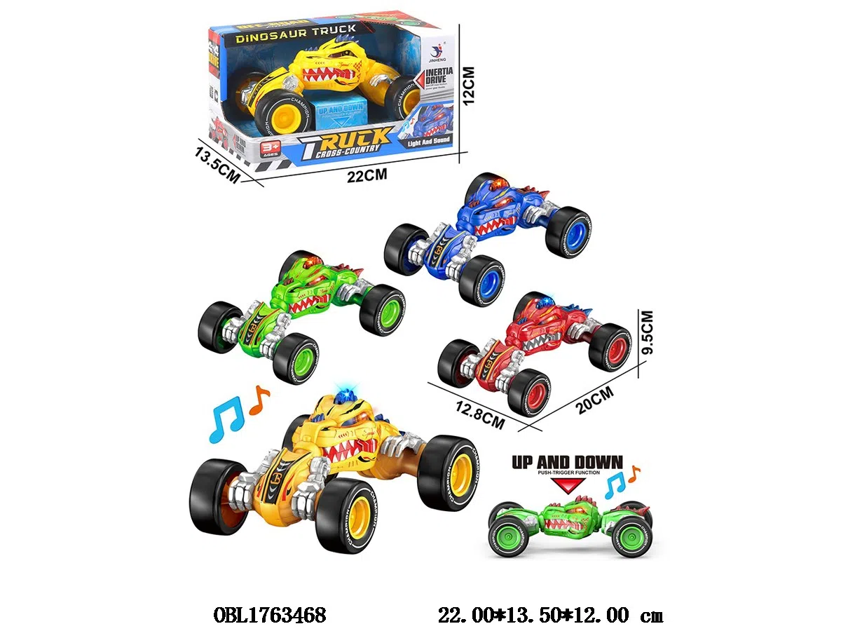 惯性扭变恐龙车带灯光声音 3*AG13包电 4色混装