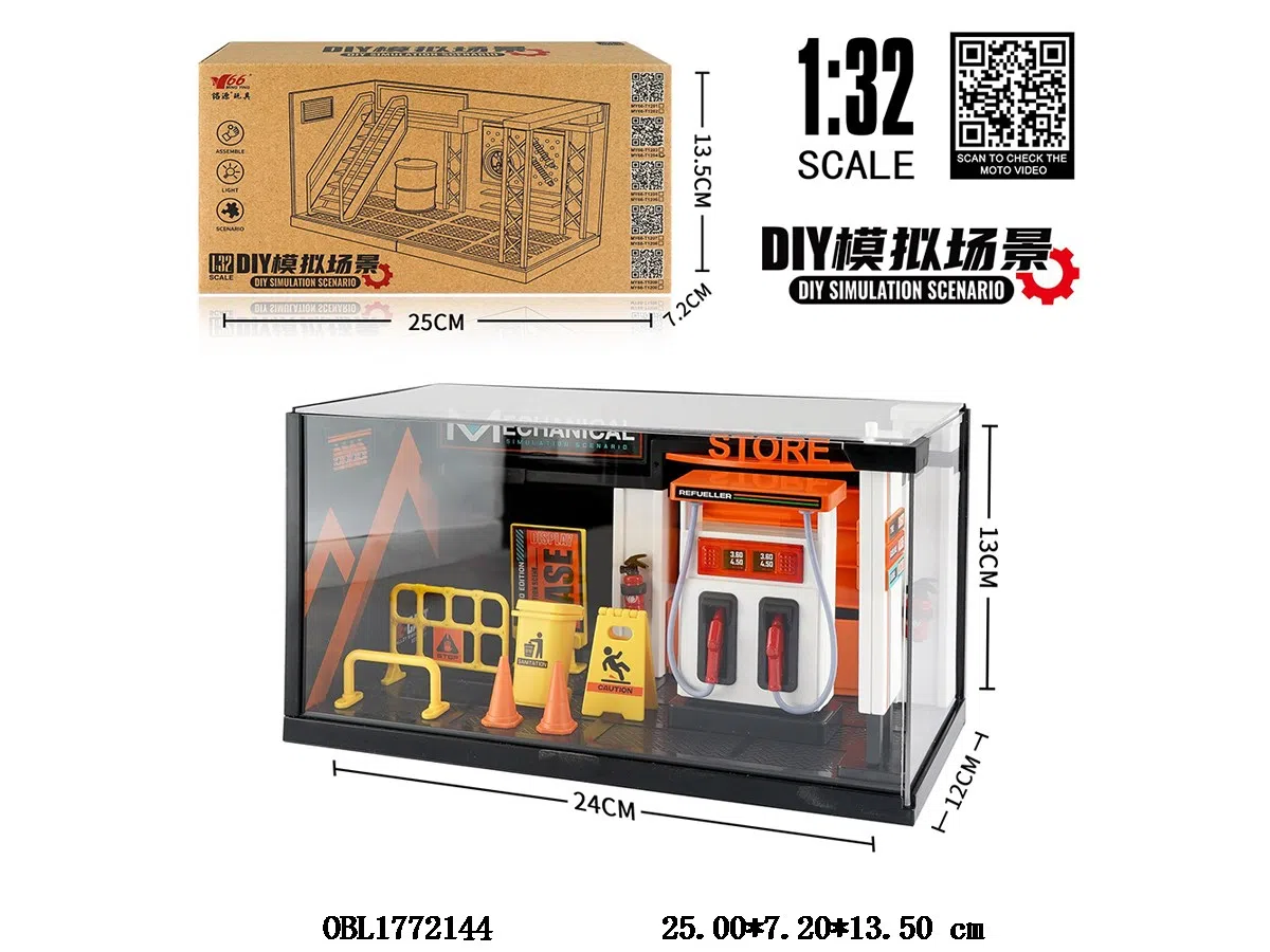 中英文版1:32加油机锌合金场景套装带灯光 3*AG13包电 带亚克力