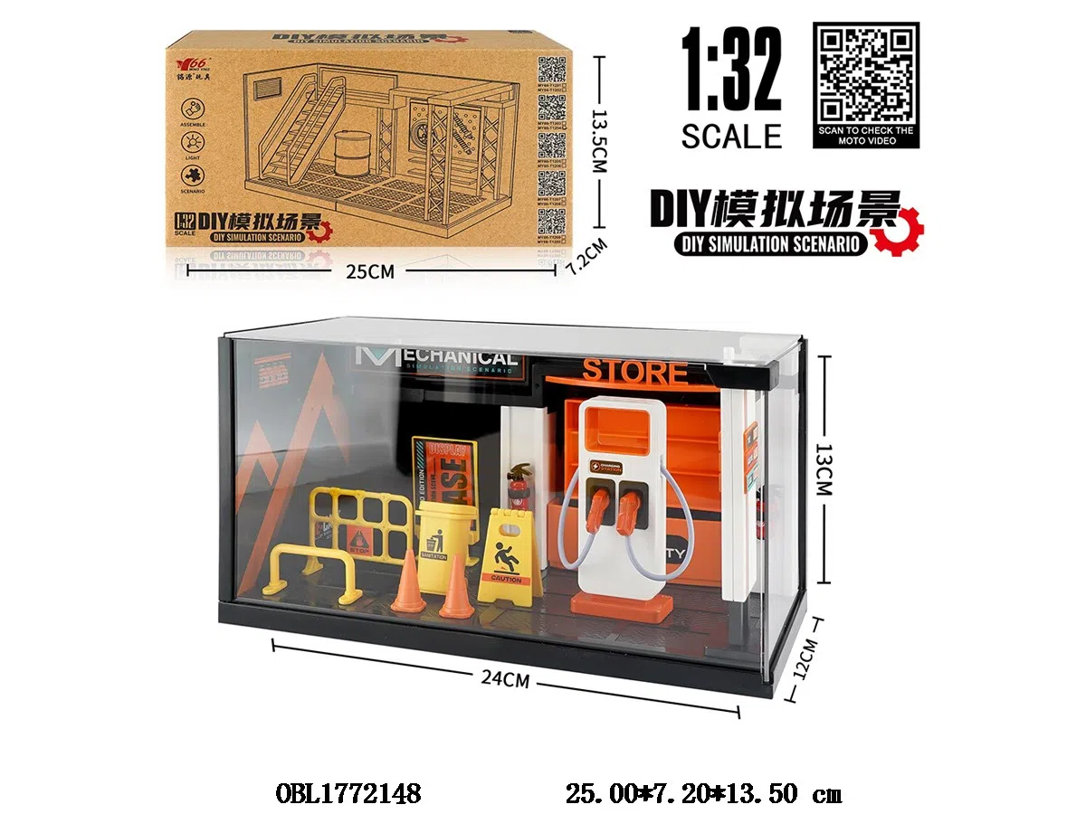 中英文版1:32充电桩锌合金场景套装带灯光 3*AG13包电 带亚克力