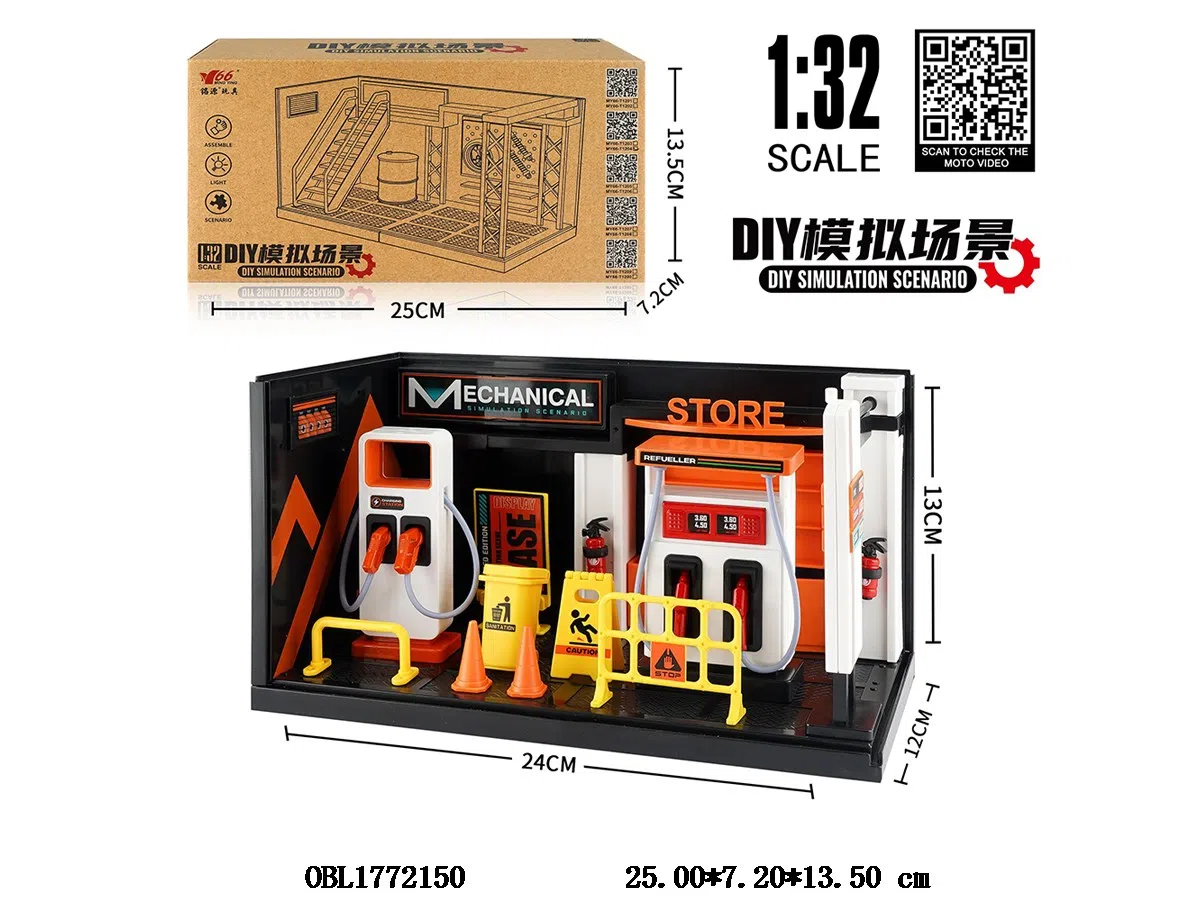 中英文版1:32加油机/充电桩锌合金场景套装带灯光 3*AG13包电