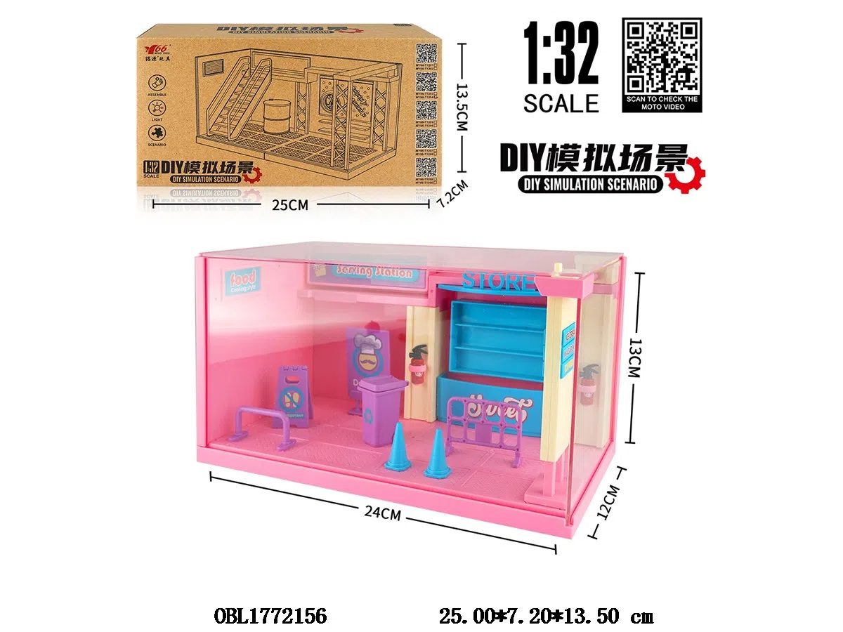 中英文版1:32锌合金冰淇淋贩卖店场景套装带灯光 3*AG13包电 带亚克力
