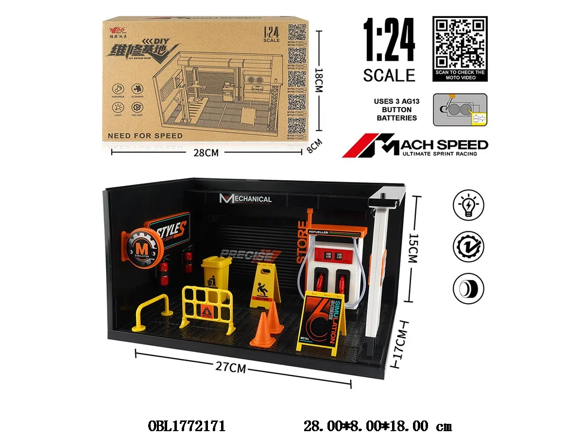 首页 > 合金套装 > 中英文版1:24加油机锌合金场景套装带灯光 3*AG13包电