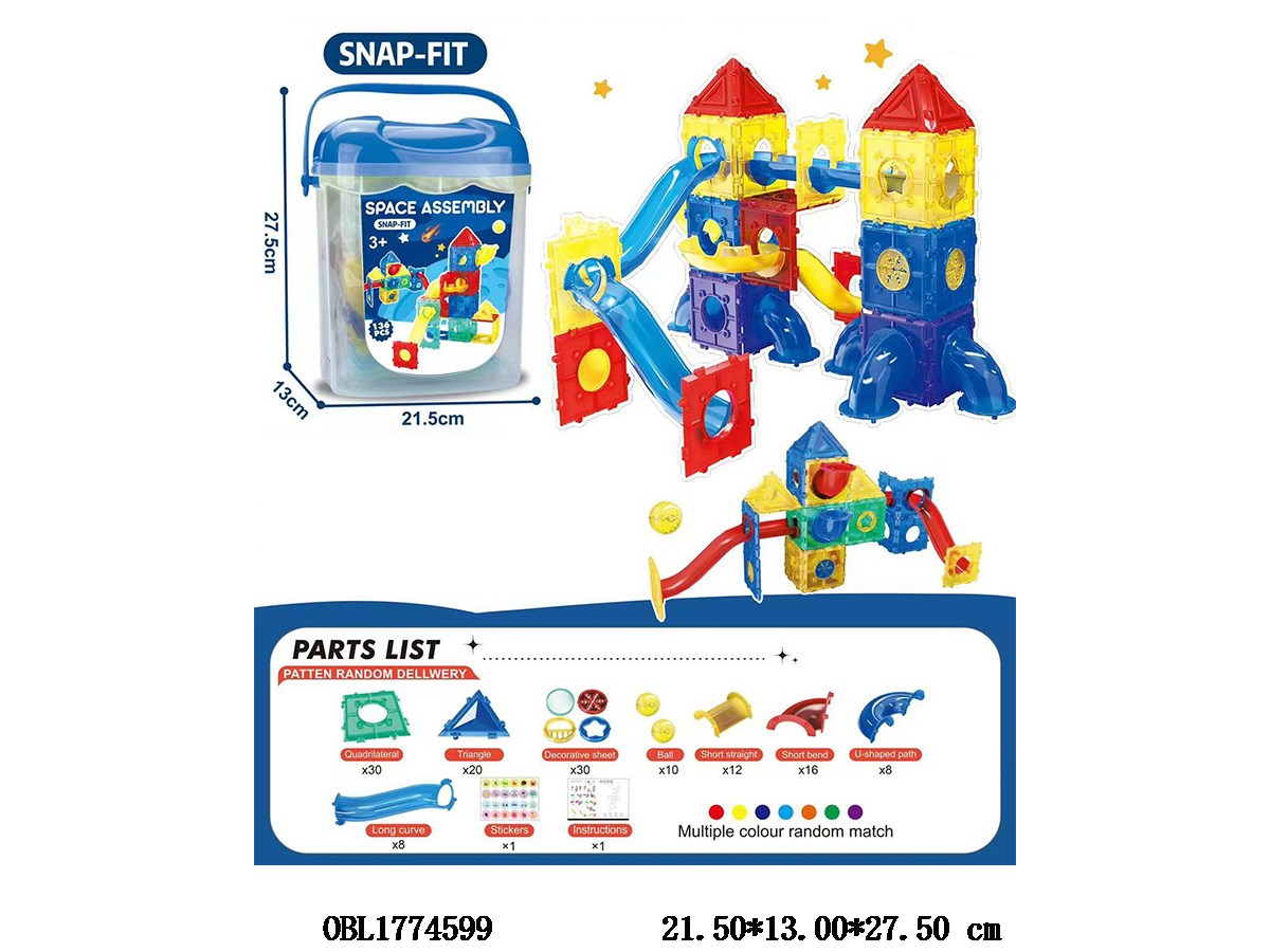 益智咔扣拼搭轨道滚珠积木 136PCS 收纳盒