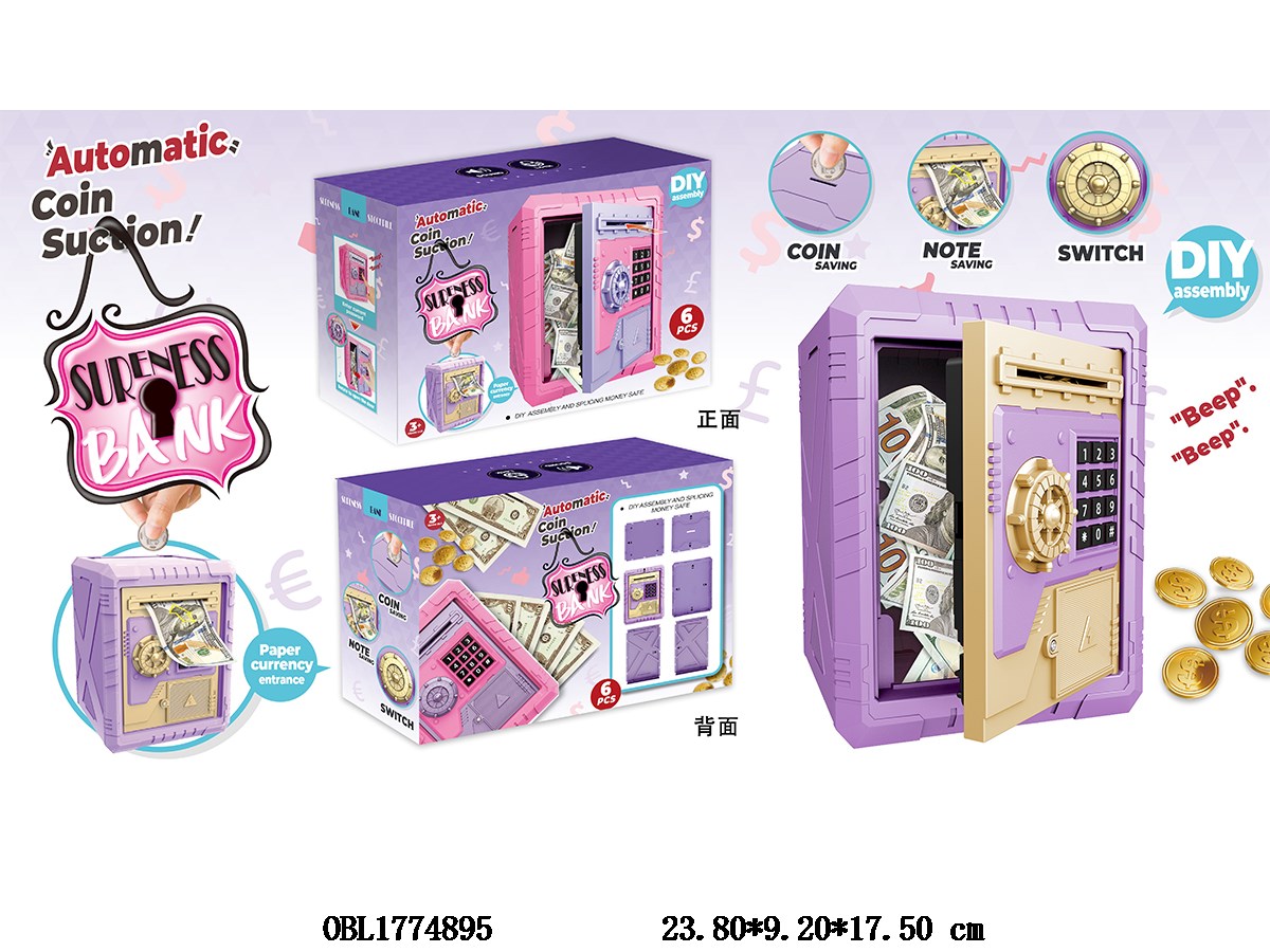 存钱罐带灯光音乐 自动卷钱 3*AA不包电 紫色