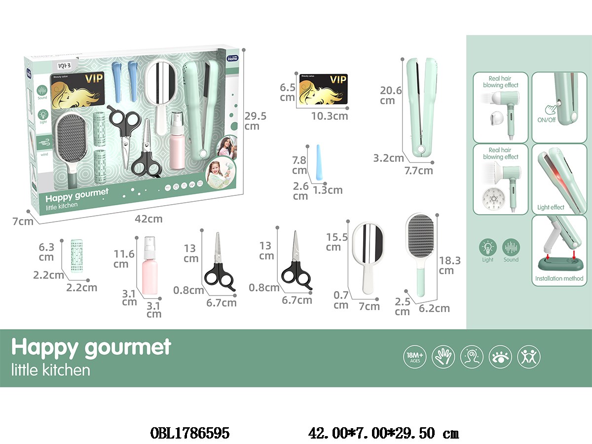 美发套装 直发棒带灯光音效 2*AAA不包电