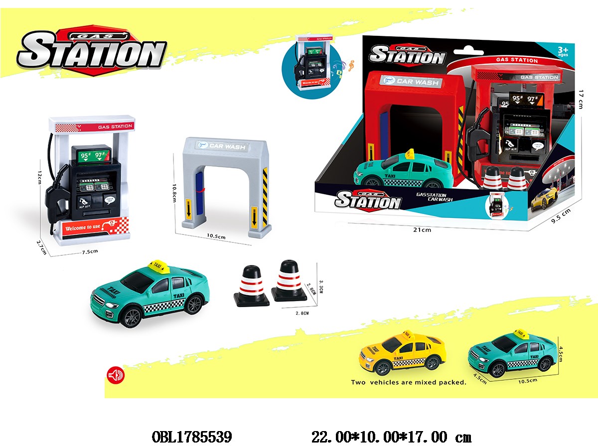 加油/洗车场套装 配1只惯性的士车 2款混装 加油机带声音 3*AG13包电