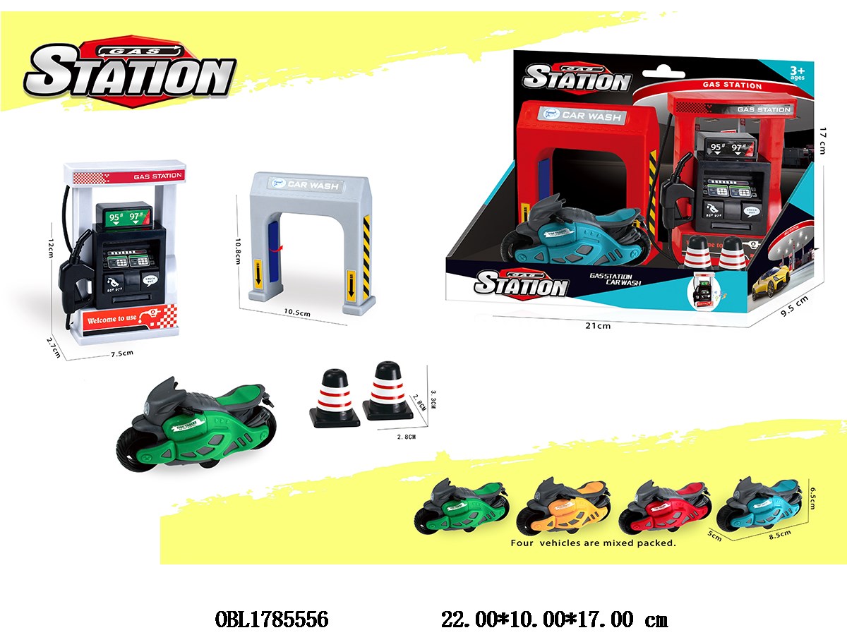 加油/洗车场套装 配1只惯性摩托车 4款混装