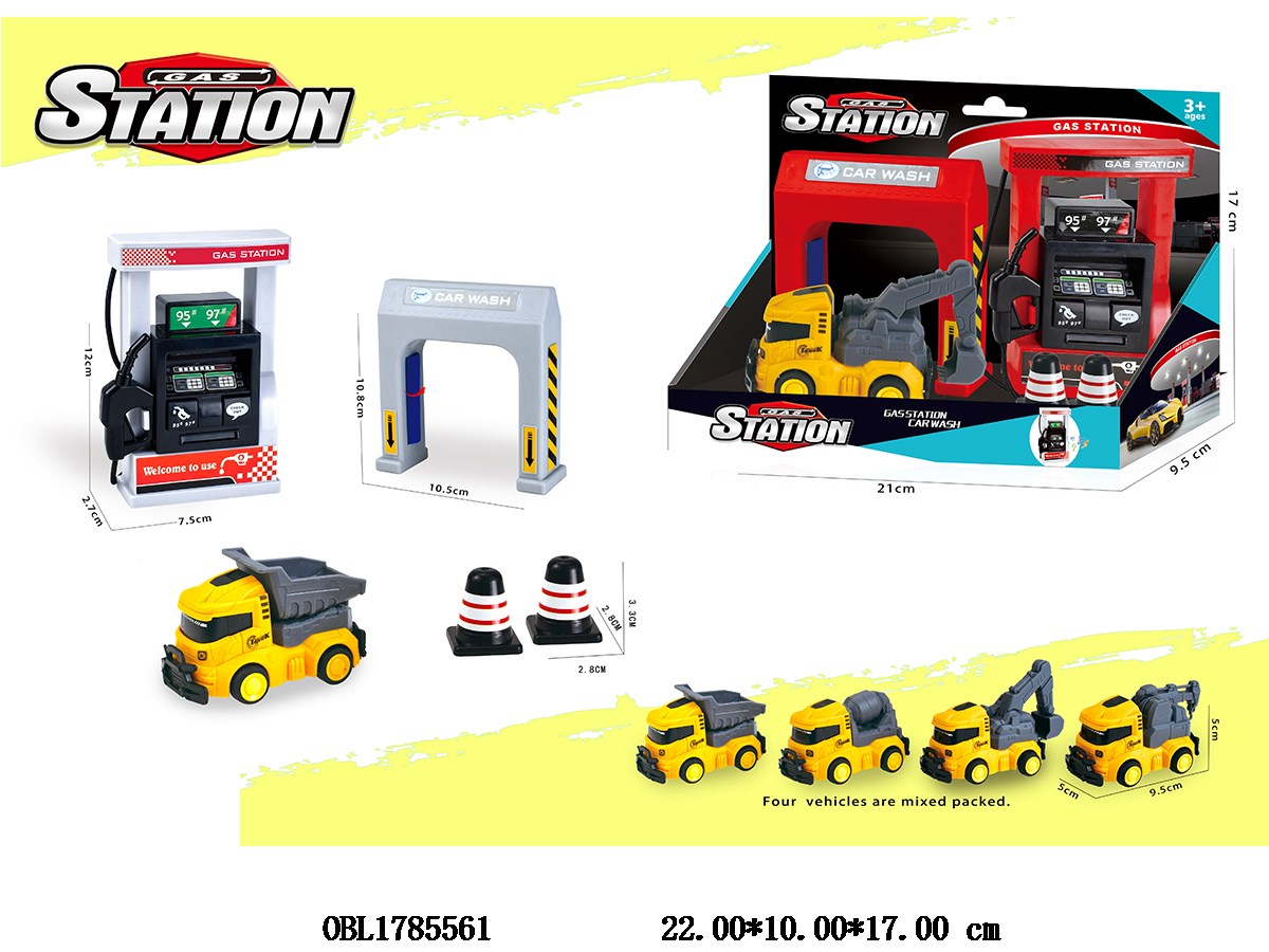 加油/洗车场套装 配1只惯性工程车 4款混装