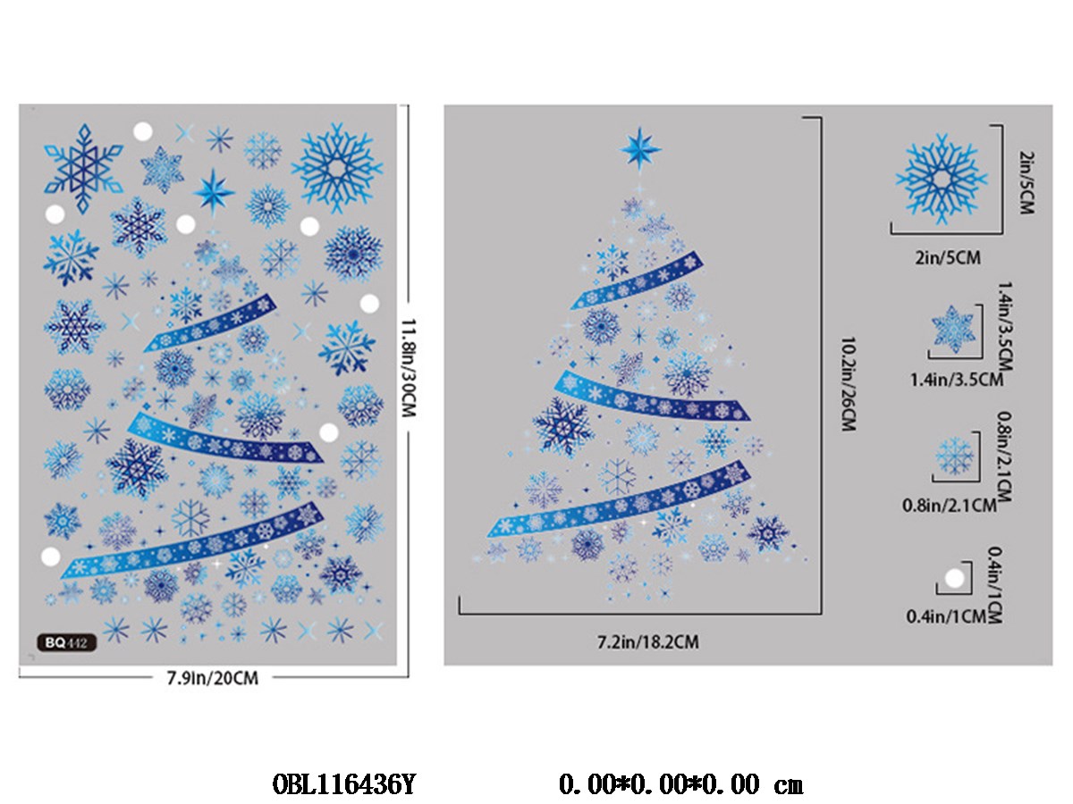 PVC雪花圣诞树窗户静电贴20*30cm 100张/中包