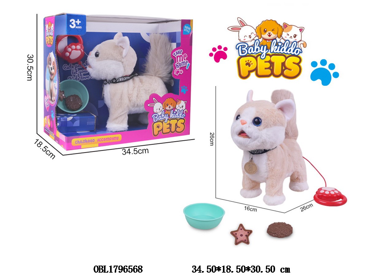 线控毛绒猫套装带音乐行走 吐舌头 录音 3*AA不包电