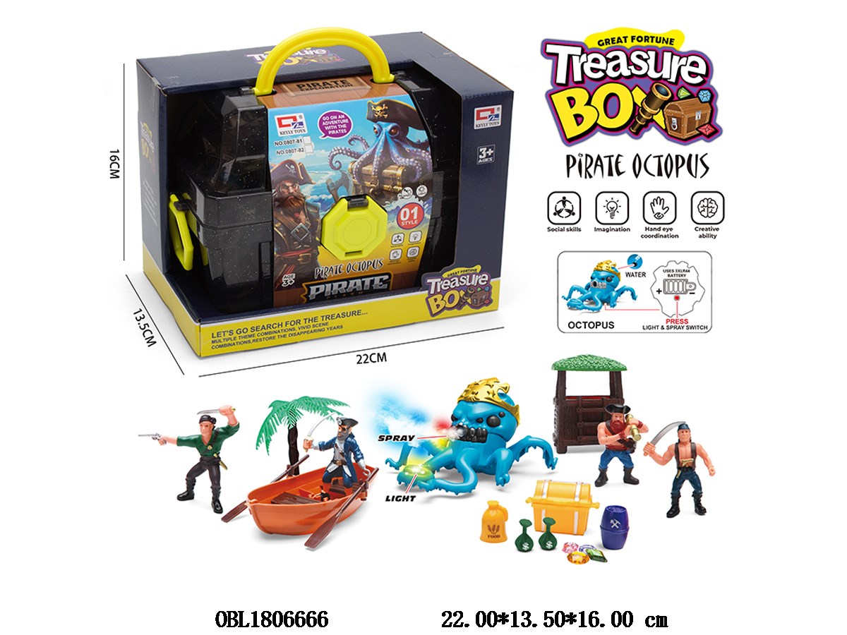 海盗百宝箱套装 章鱼带灯光喷雾 3*AG13包电