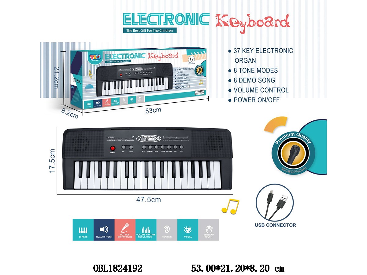 首页 > 电子琴 > 37键多功能电子琴带麦克风 TYPEC连接线 4*AA不包电