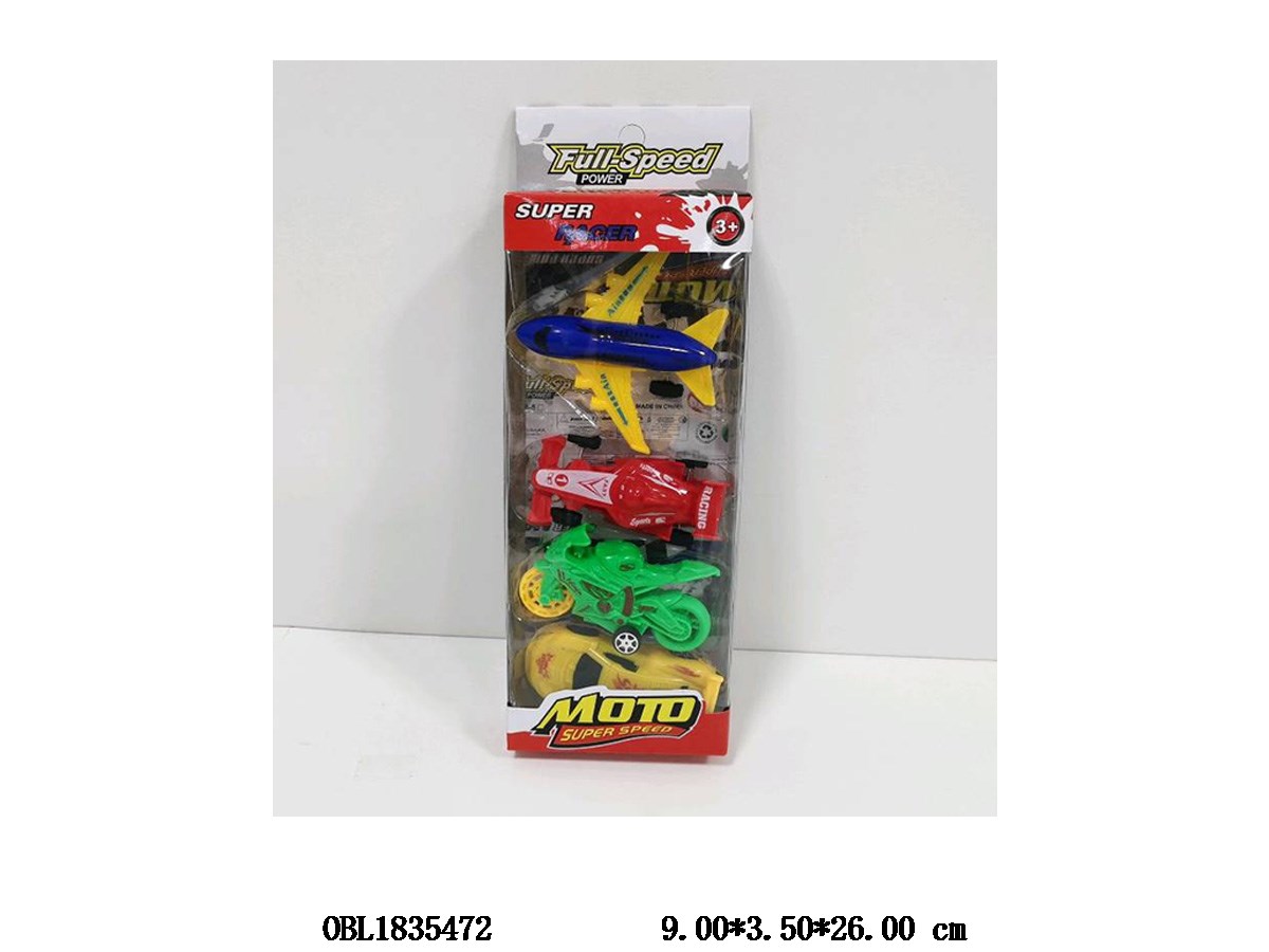 4只装滑行客机/摩托车/跑车/方程车 3款4色混装