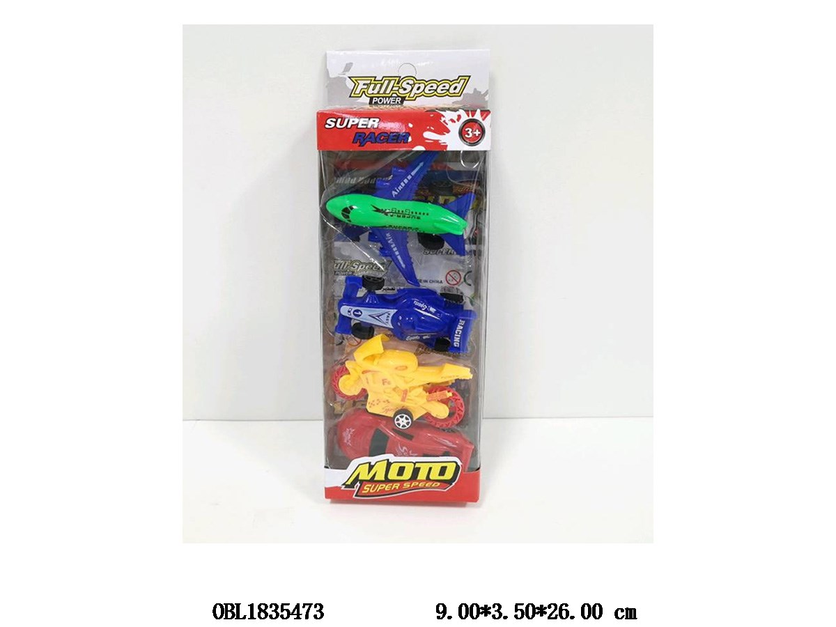 4只装滑行客机/摩托车/跑车/方程车 3款4色混装