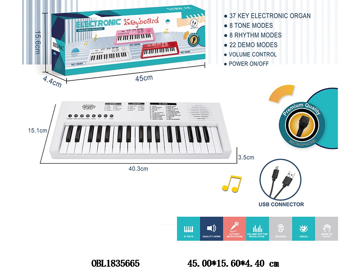 37键多功能电子琴带麦克风 TYPEC连接线 3*AA不包电
