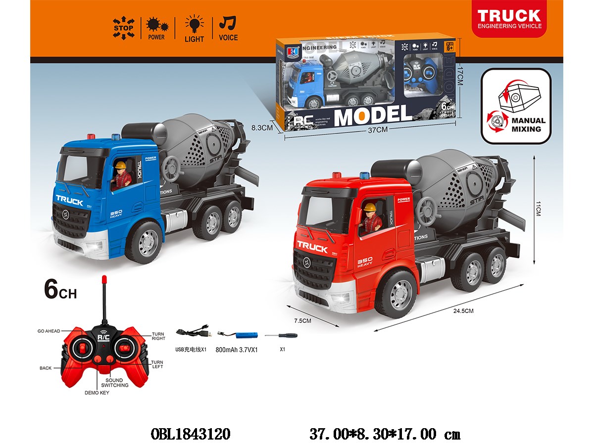 首页 > 遥控车 > 6通遥控搅拌车套装带灯光声音 配USB线 车身3.7V锂电池包电 遥控器2*AA不包电 27频率 2色混装