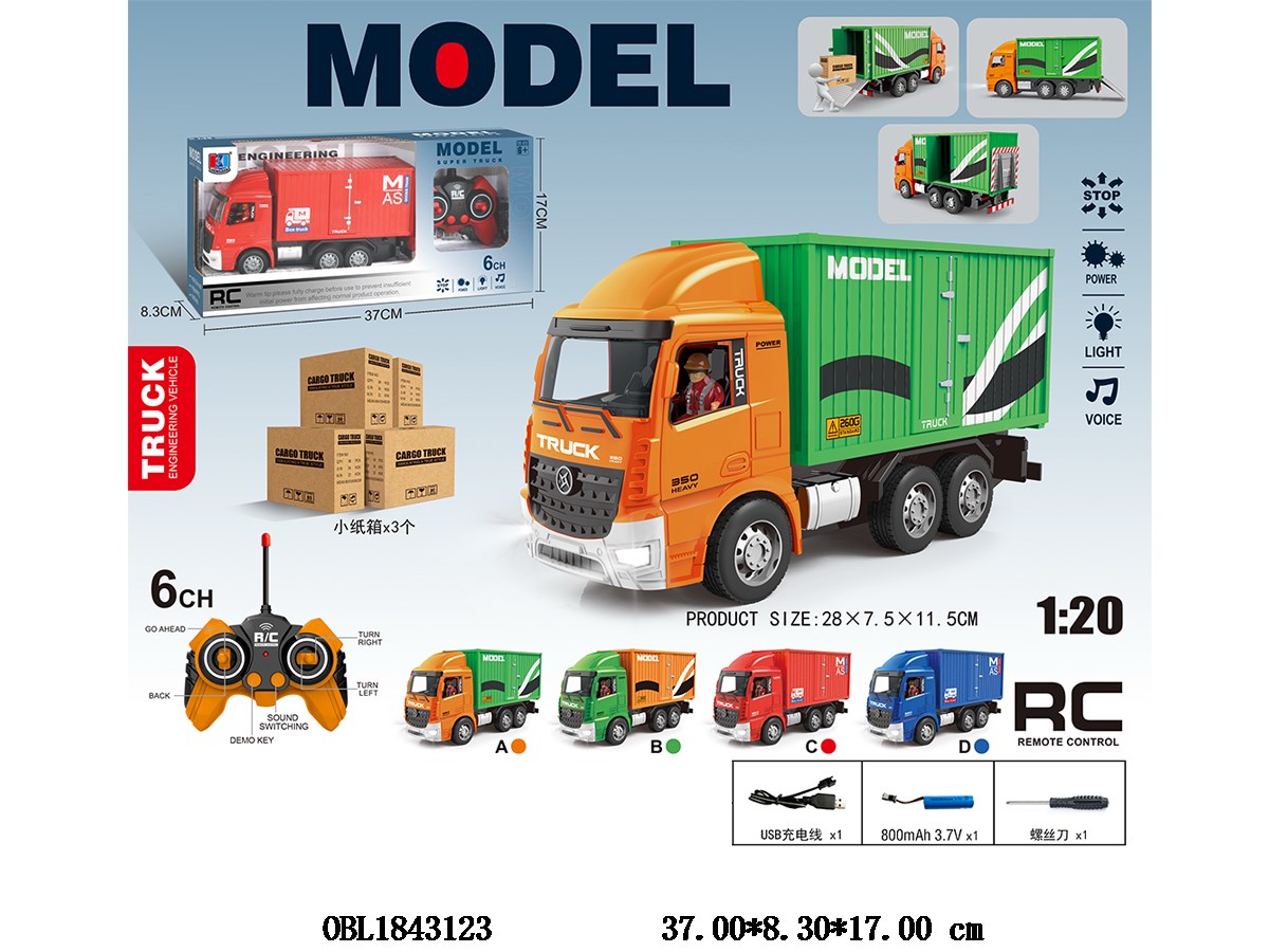 首页 > 遥控车 > 6通遥控小货车套装带灯光音乐 配USB线 车身3.7V锂电池包电 遥控器2*AA不包电 27频率 4色混装