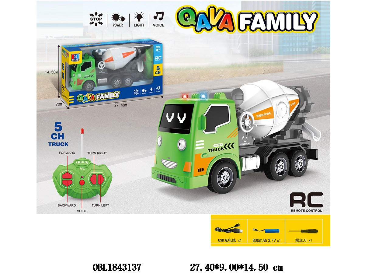 首页 > 遥控车 > 5通遥控搅拌车带灯光音乐 配USB线 车身3.7V锂电池包电 遥控器2*AA不包电