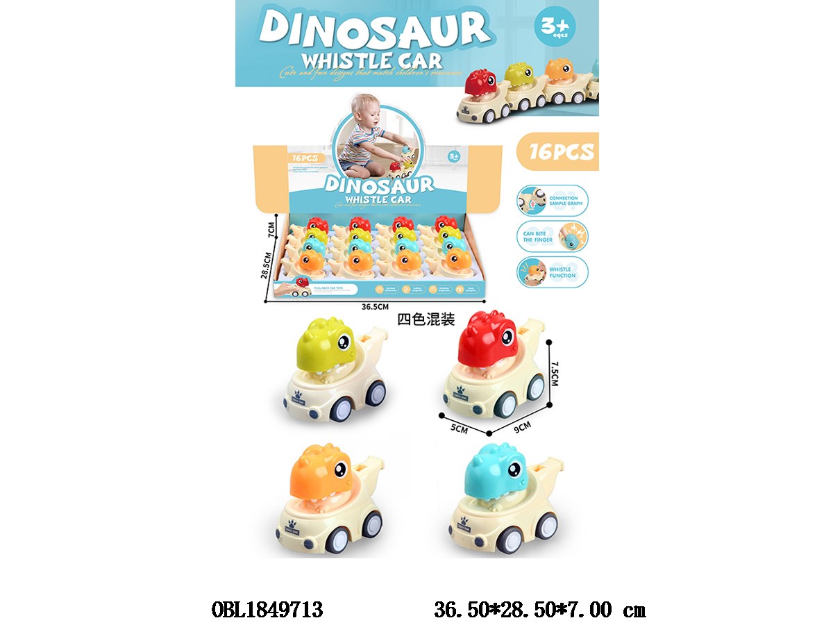卡通回力恐龙口哨车 可装糖 4色混装 16只装一展示盒