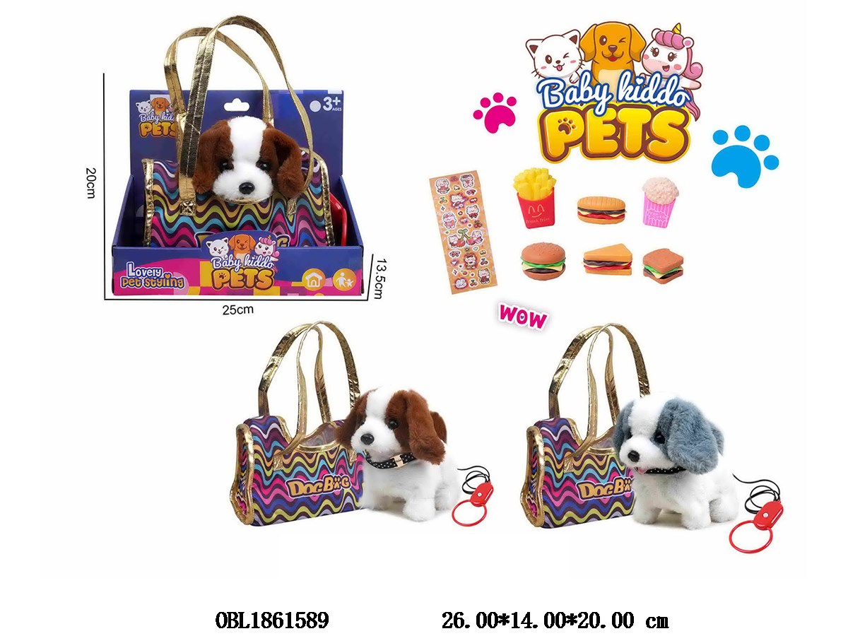 电动牵绳毛绒狗套装带叫声 行走 2*AA不包电 2色混装
