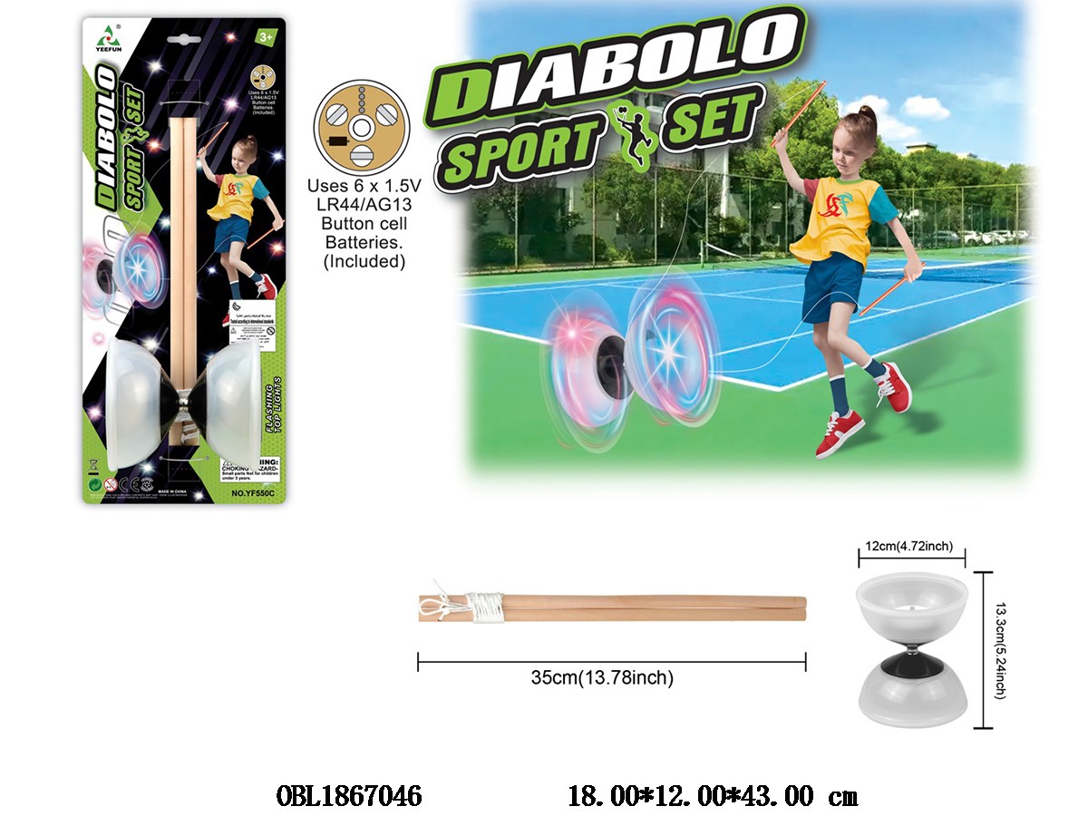 木制手把空竹套装 带灯光 6*LR44/AG13包电