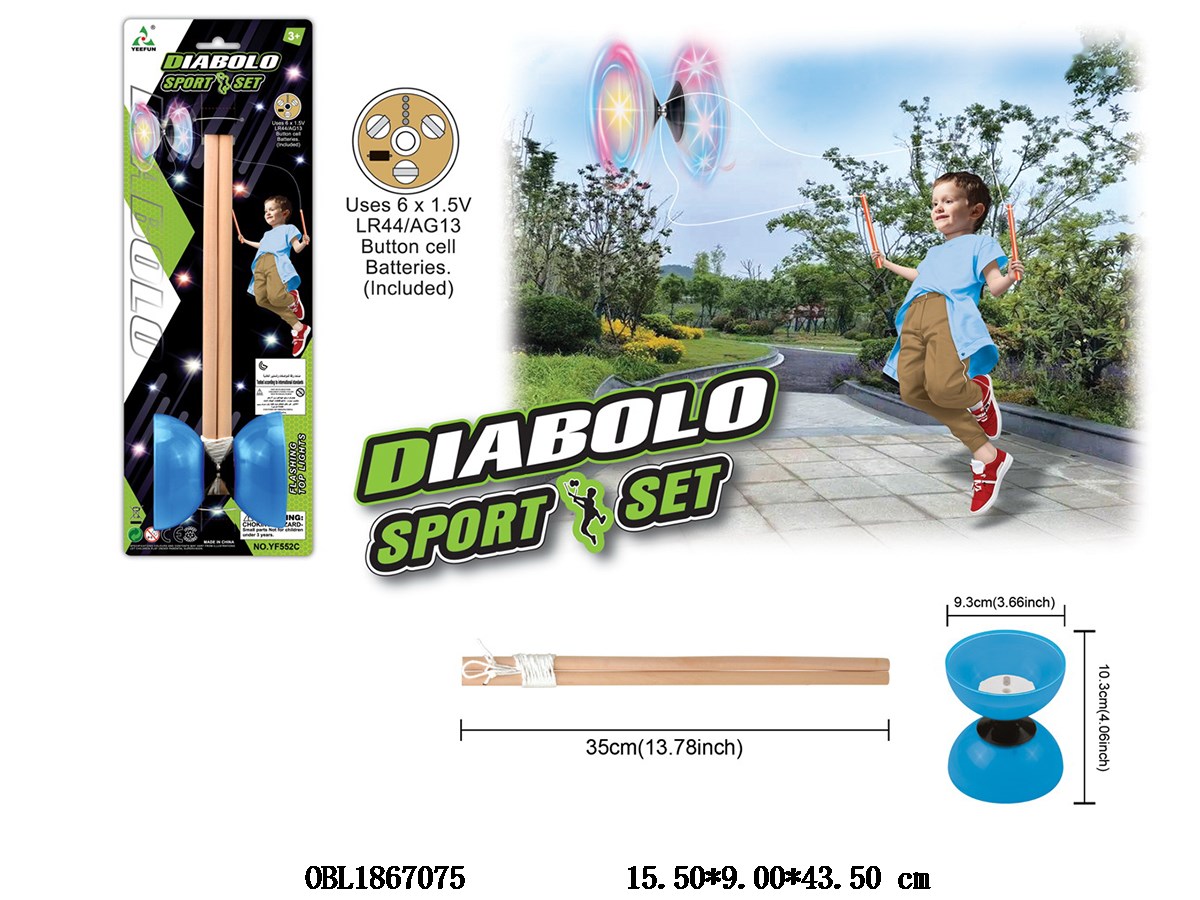 木制手把空竹套装 带灯光 6*LR44/AG13包电