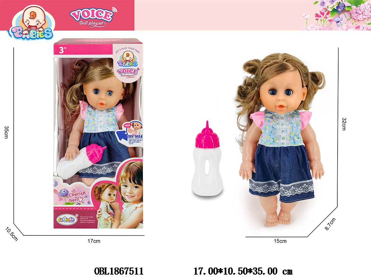 首页 > 功能娃娃 > 14寸空身喝水尿尿公仔套装带IC 3*AG13包电 主体衣服1款1色