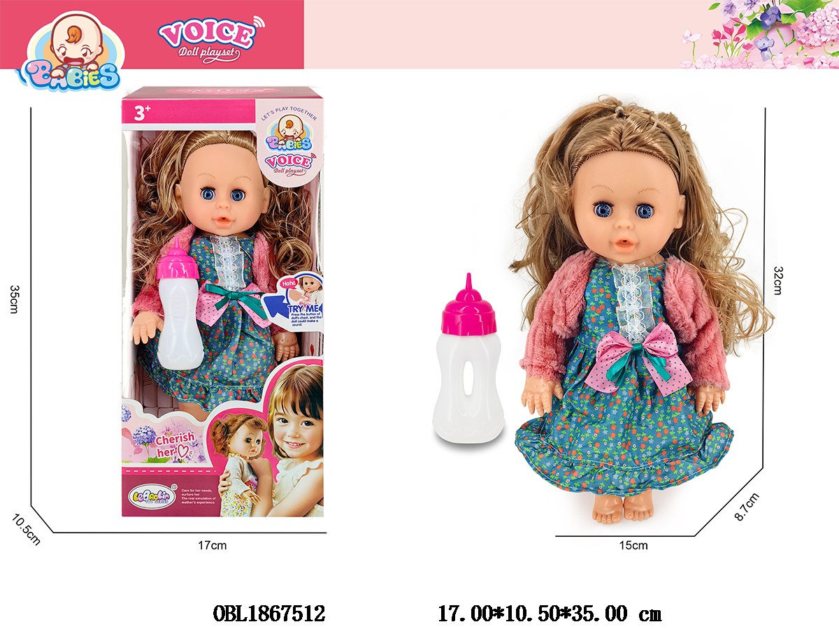 首页 > 功能娃娃 > 14寸空身喝水尿尿公仔套装带IC 3*AG13包电 主体衣服1款1色