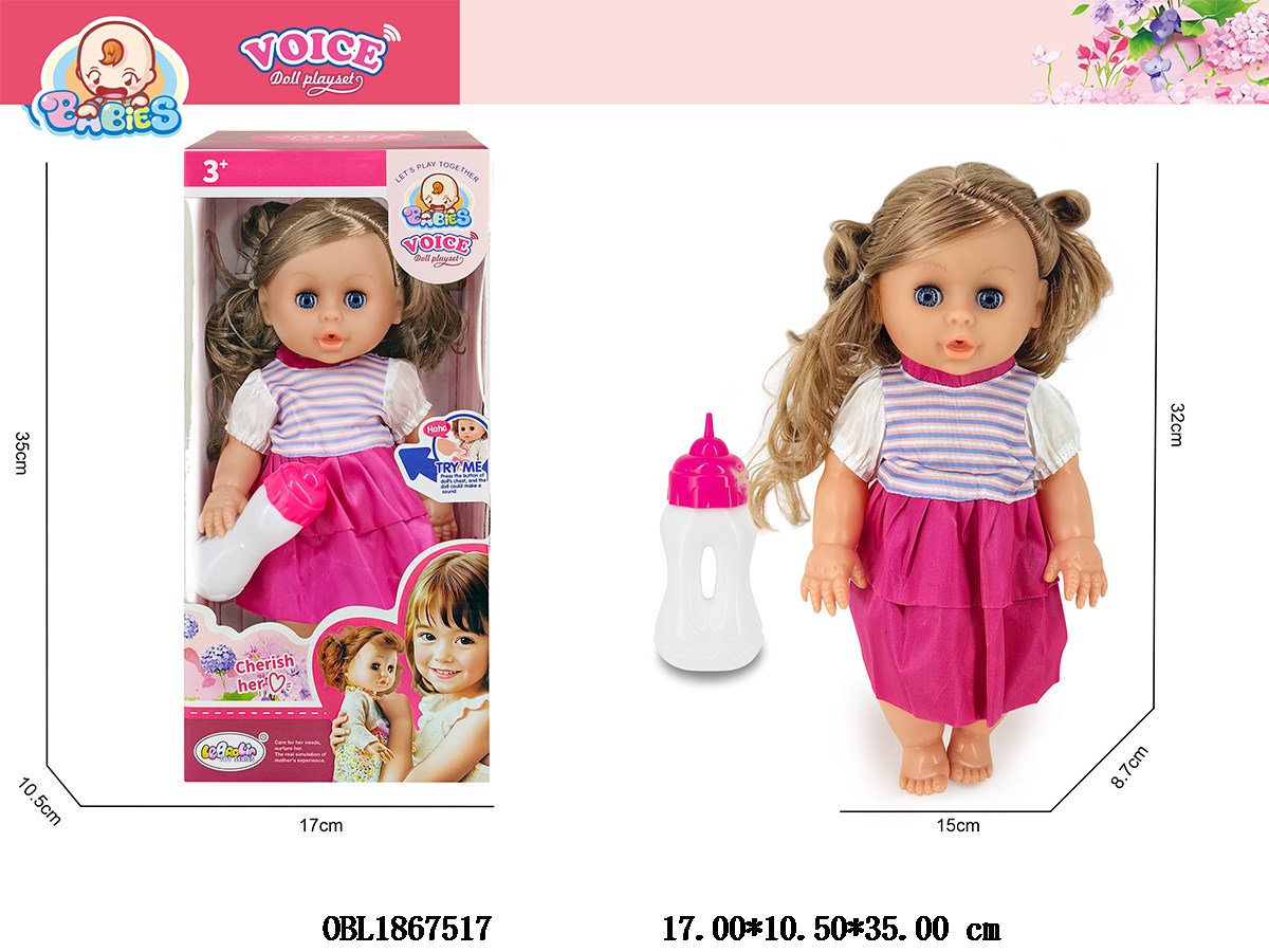 首页 > 功能娃娃 > 14寸空身喝水尿尿公仔套装带IC 3*AG13包电 主体衣服1款1色