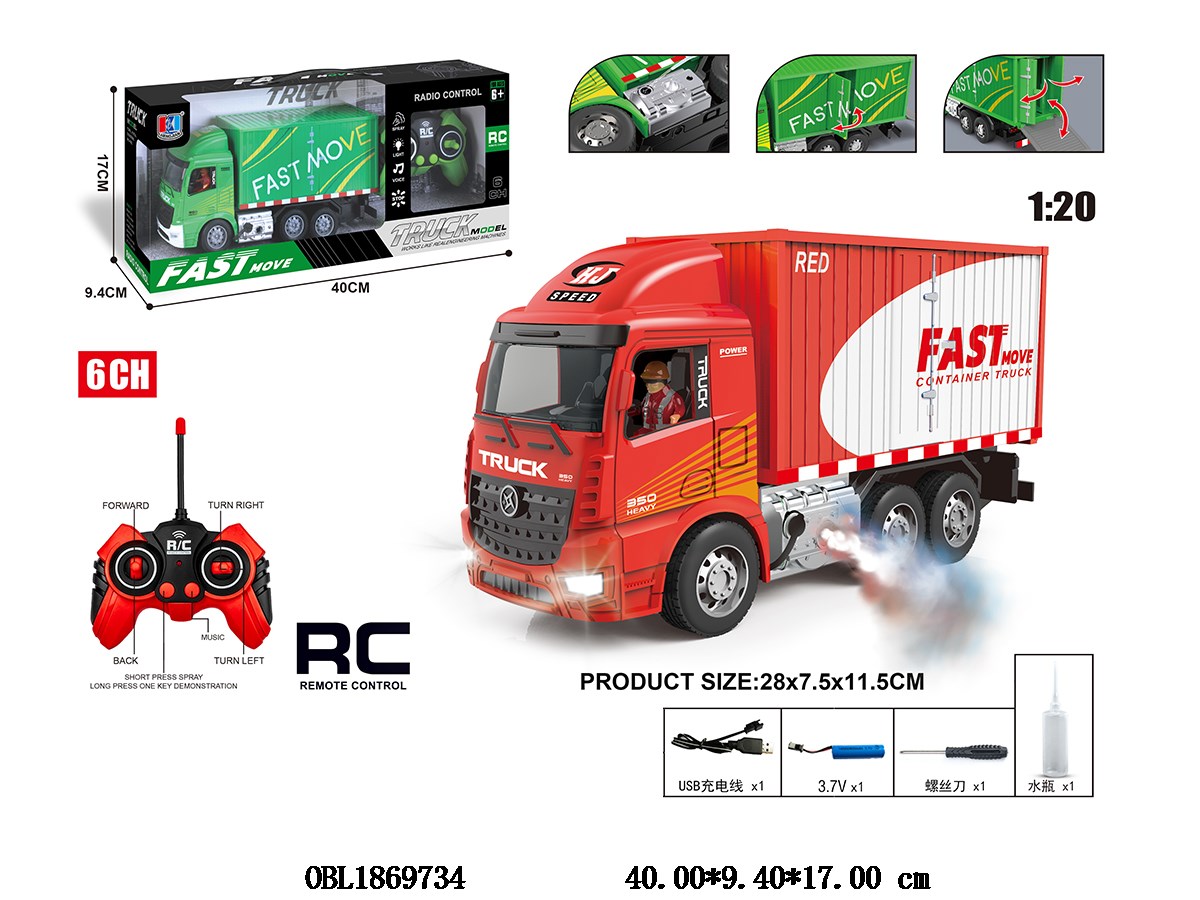 六通遥控大货车带灯光声音冒烟 配USB线 车身3.7V锂电池包电 遥控器2*AA不包电 49频率 2色混装